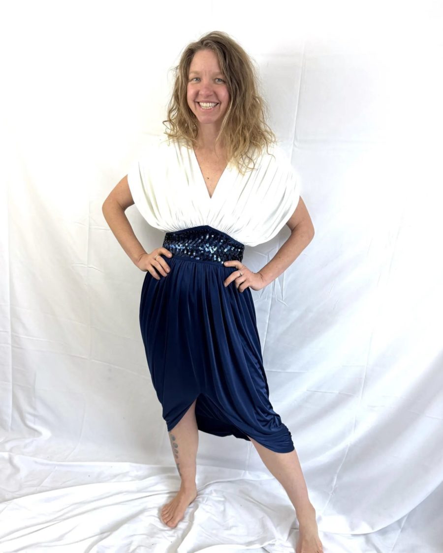 Sparkpick features Nik Gundersen on DressX digital Olympa look in sustainable fashionView