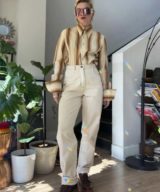 Balance the workwear vibe with a cropped baby tee or a romantic vintage blouse. Add chunky boots or retro sneakers to complete the look.