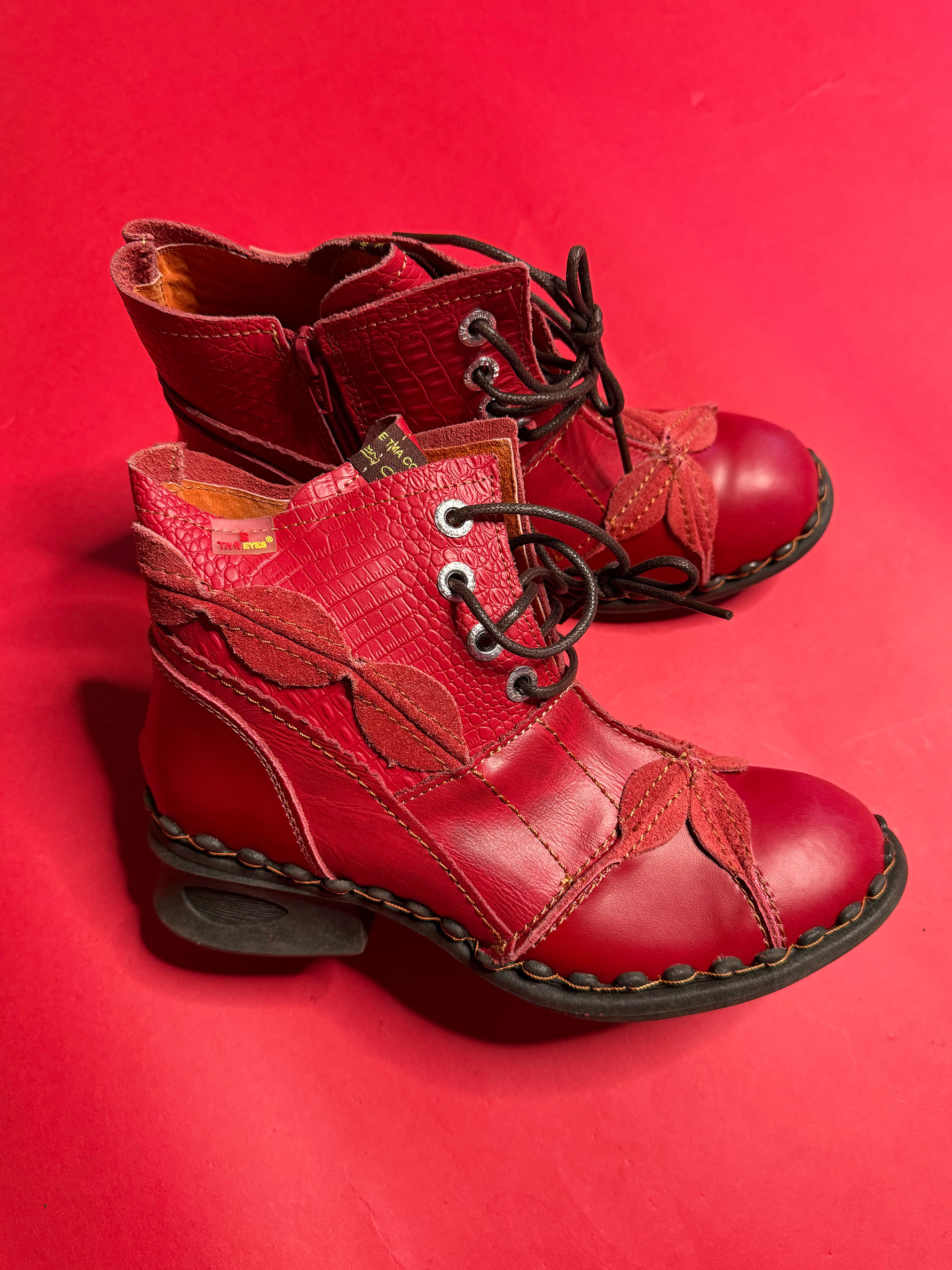 Wear them two ways—lace them up for a structured, polished look or use the side zipper for a quick, easy fit. The washed layered leather design adds a unique, vintage touch that pairs effortlessly with casual denim and a cozy sweater or a flowy dress and a leather jacket for an edgy-chic look.