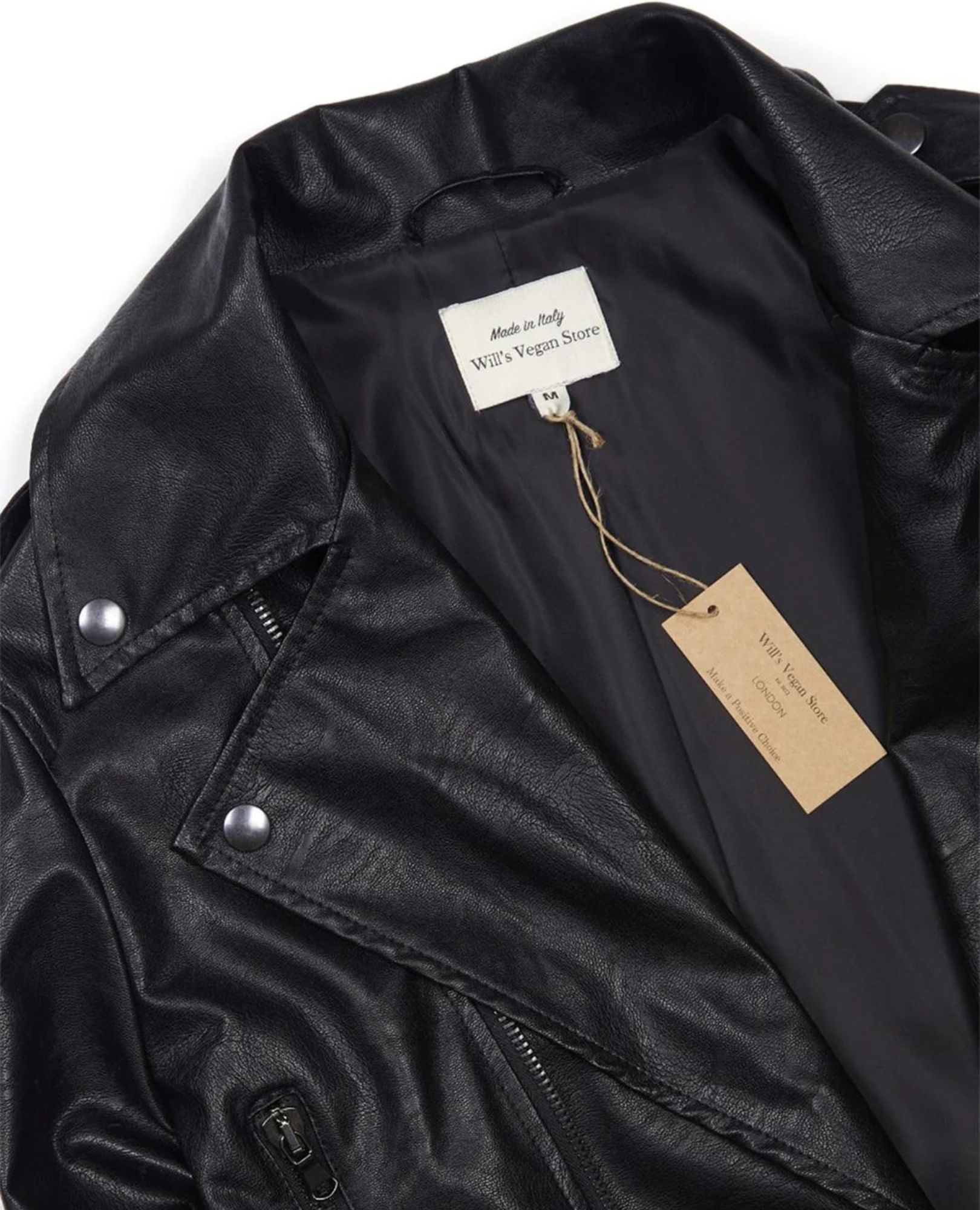 Elevate your wardrobe with the vegan biker jacket—where timeless style meets ethical craftsmanship. Handcrafted in Tuscany from supple Italian vegan leather, this classic piece features moto details like zip pockets, studs, and shoulder epaulettes for an edgy vibe. With a flattering fit that sits perfectly on the hips, it’s versatile enough to transition from casual outings to bold ensembles. Plus, it’s designed with nickel-free hardware and a smooth viscose lining for effortless layering.