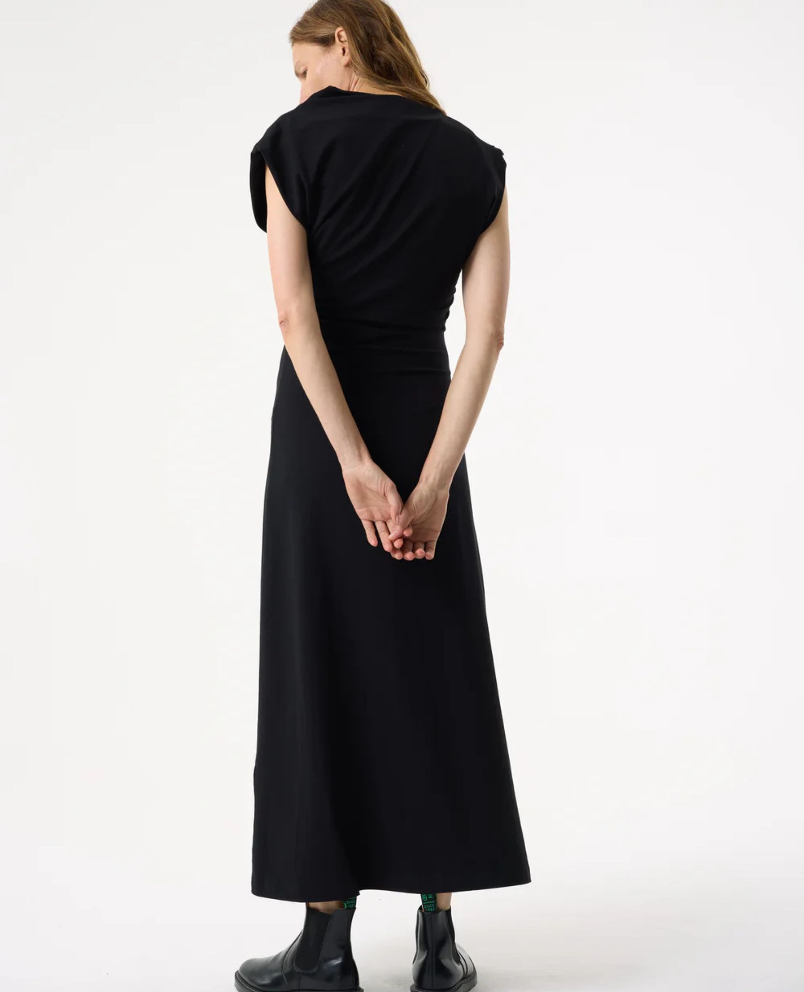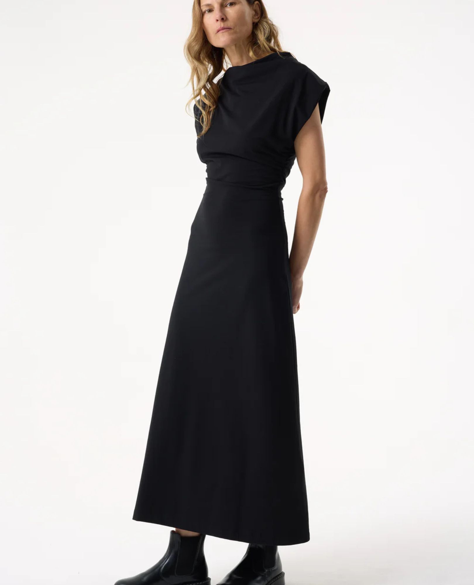 Step into effortless elegance with the Lola Maxi Dress — a sleek evolution of our beloved Isla Top. Featuring the same asymmetric neckline and graceful draping, this dress transforms those elements into a flowing maxi silhouette. Crafted from soft cotton jersey, it cinches at the waist to flatter your figure before cascading into a chic A-line skirt.