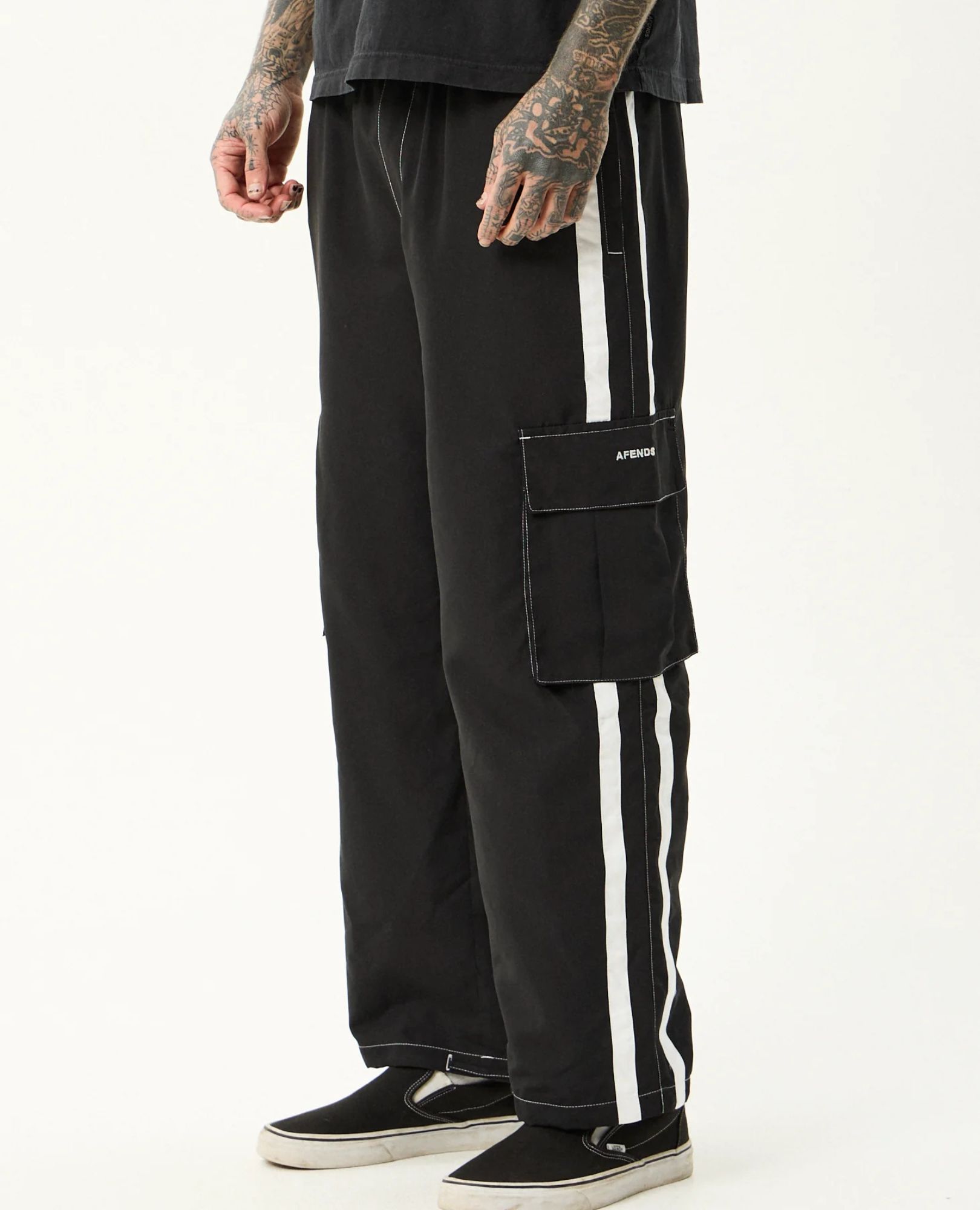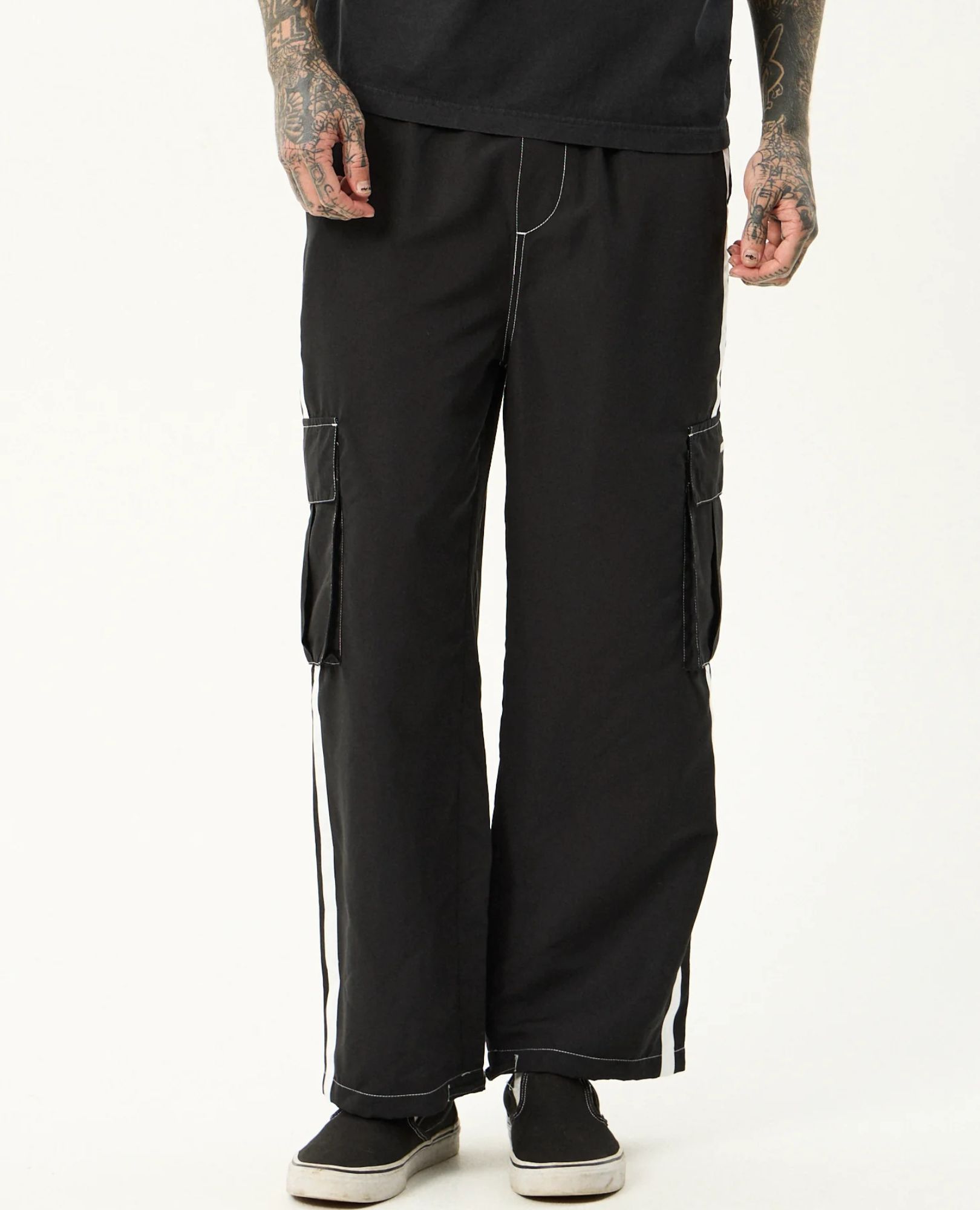 Meet the ‘House Related’ cargo pant—baggy fit, adjustable waist, and rugged details like cargo pockets, side taping, and contrast stitching.