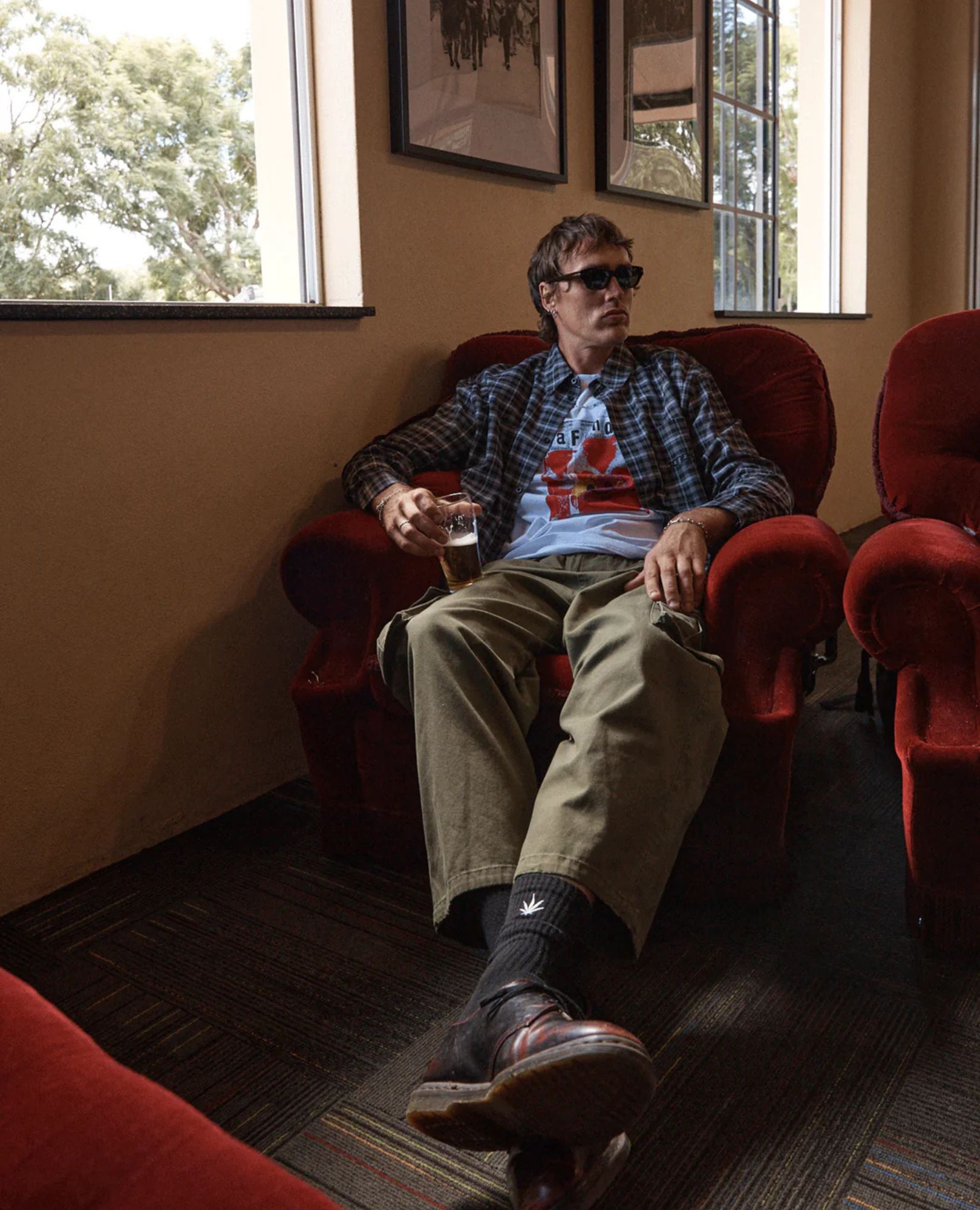 Keep it simple with a solid tee and chunky sneakers. Let the relaxed silhouette of the pants be the statement.