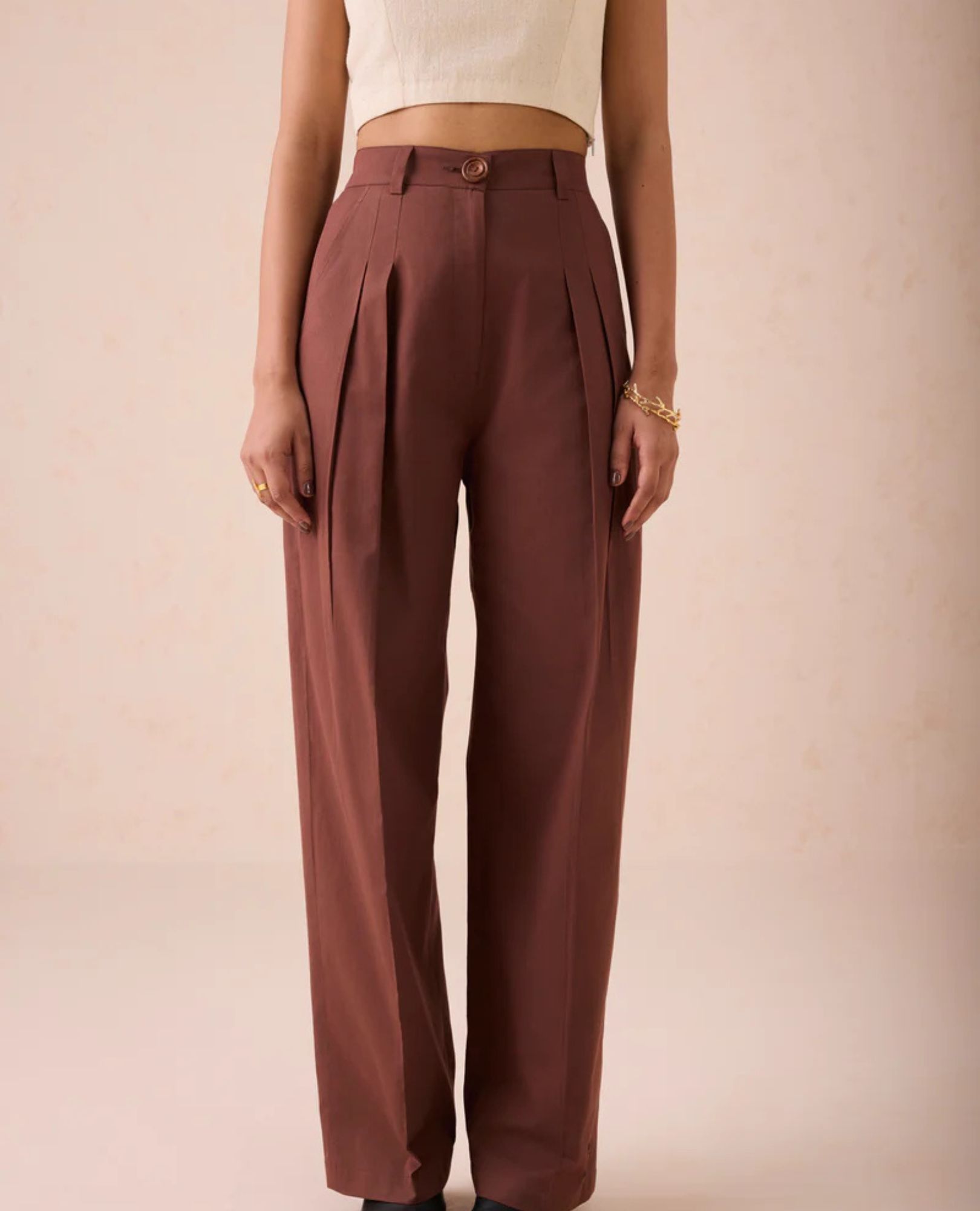 Elevate your wardrobe with these fitted, straight-leg trousers. Made from azo-free dyed organic cotton twill and beautifully hand-embroidered with a floral motif, they’re perfect for any occasion.