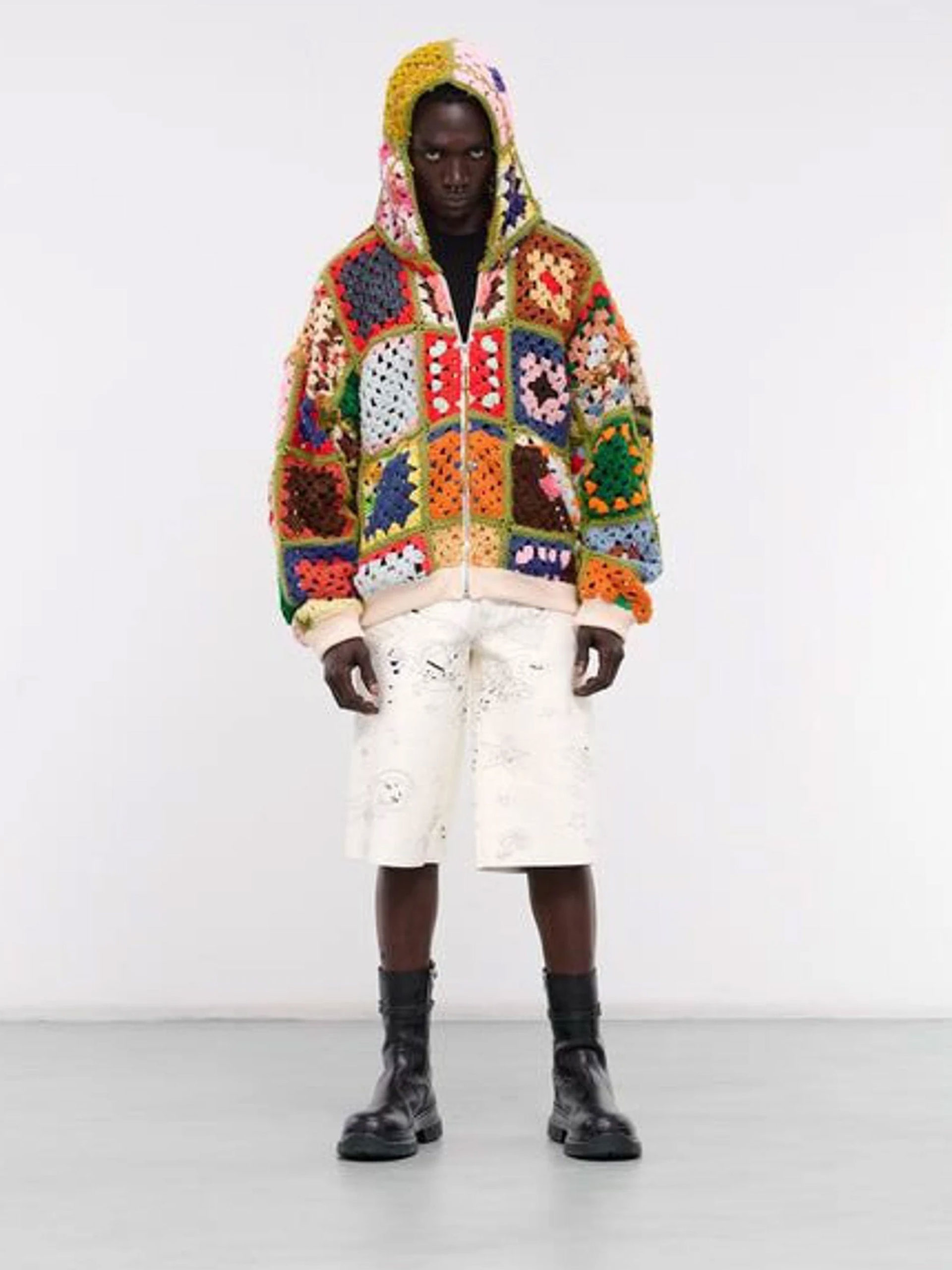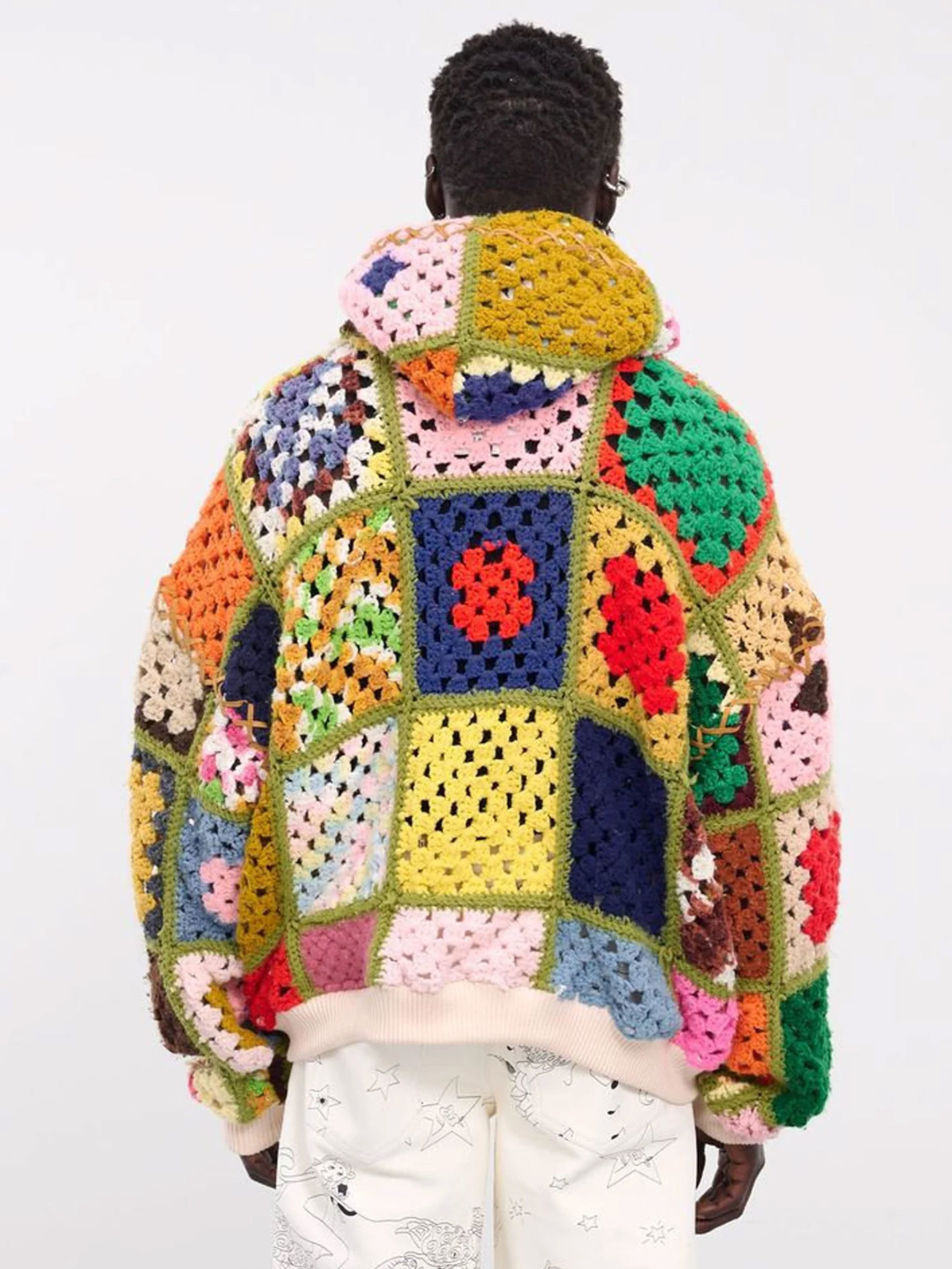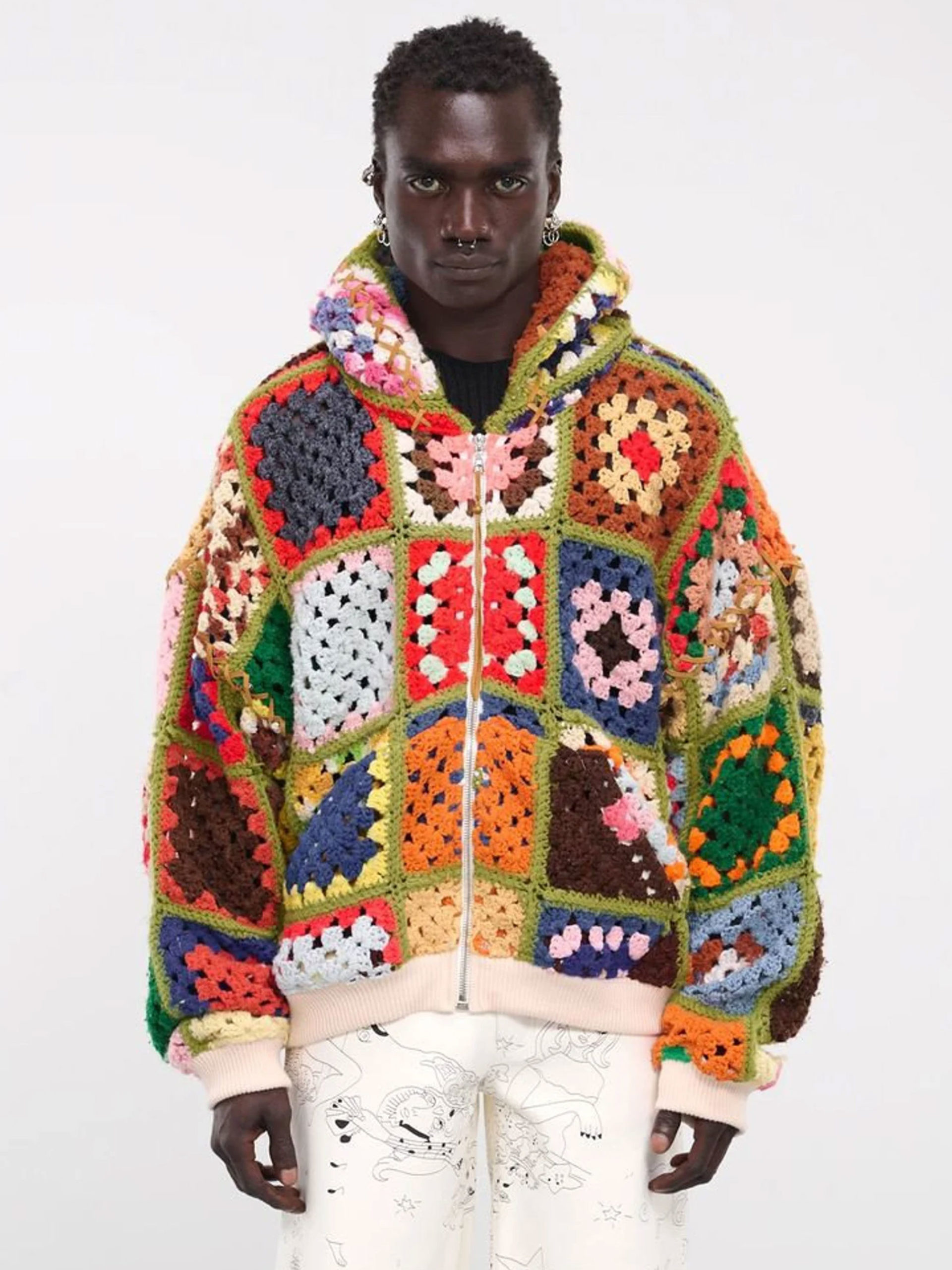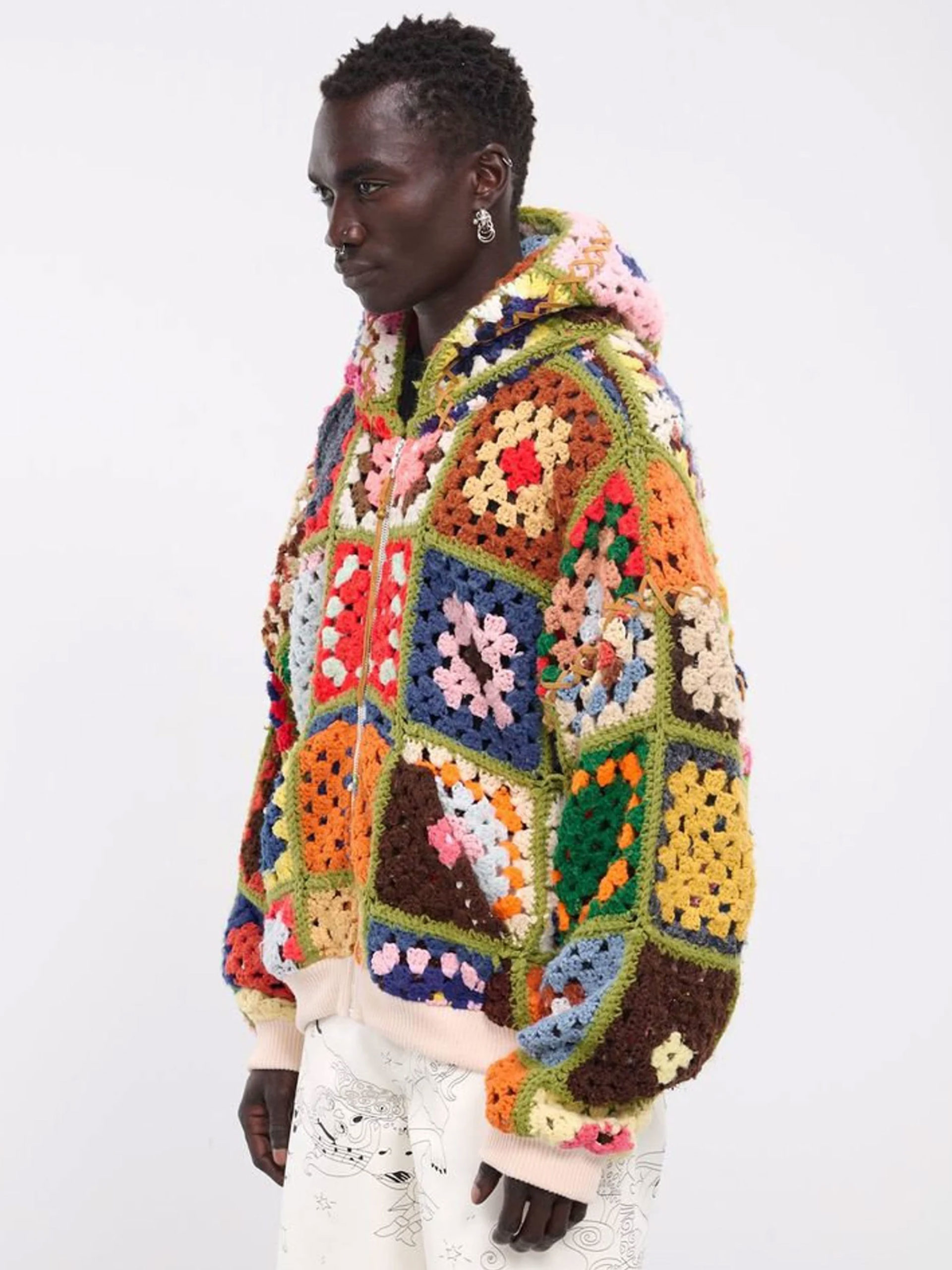 Handmade crochet granny square cardigan in soft, organic cotton—colorful, lightweight, and endlessly versatile. Perfect over dresses or jeans for effortless summer style.