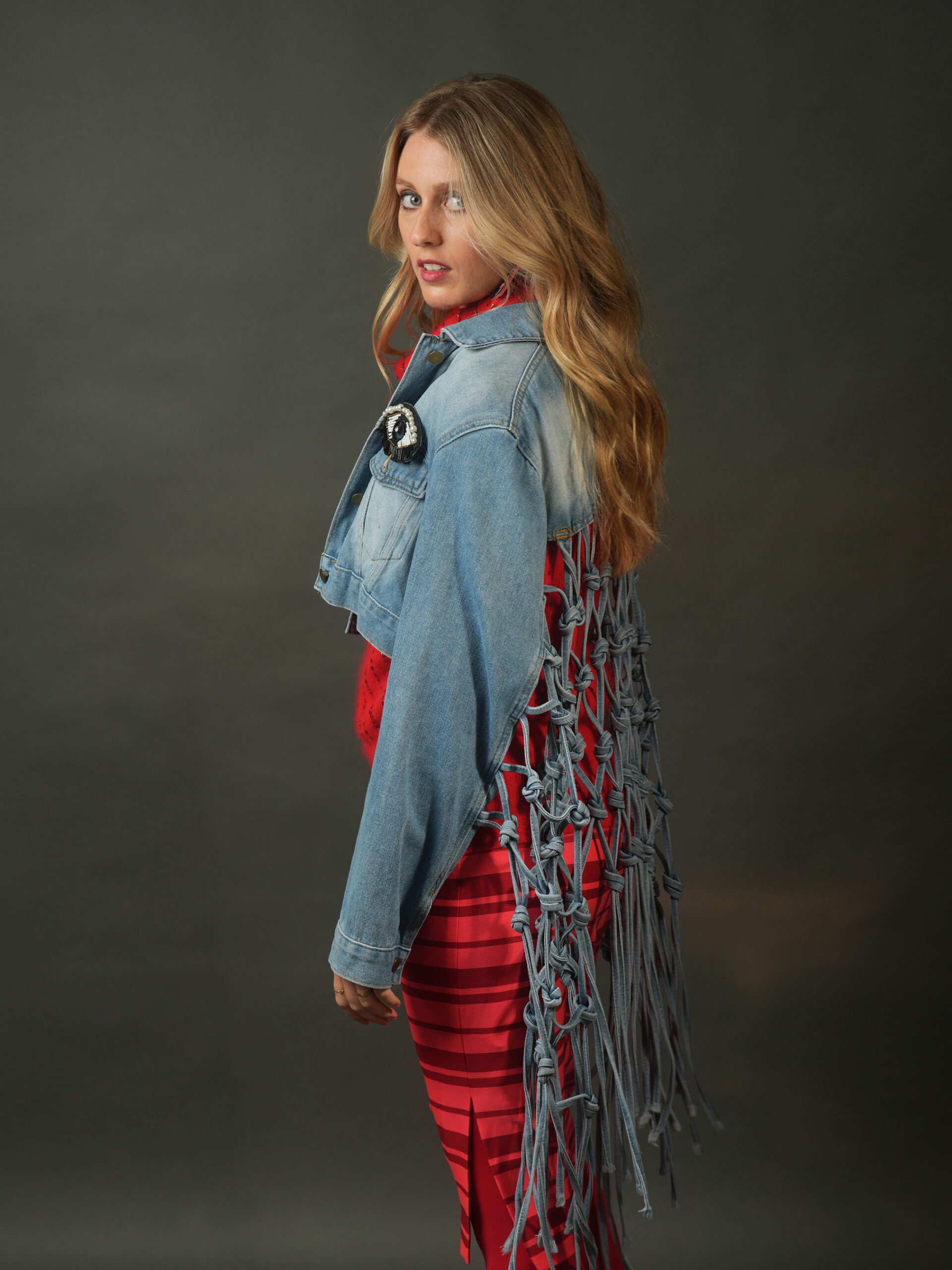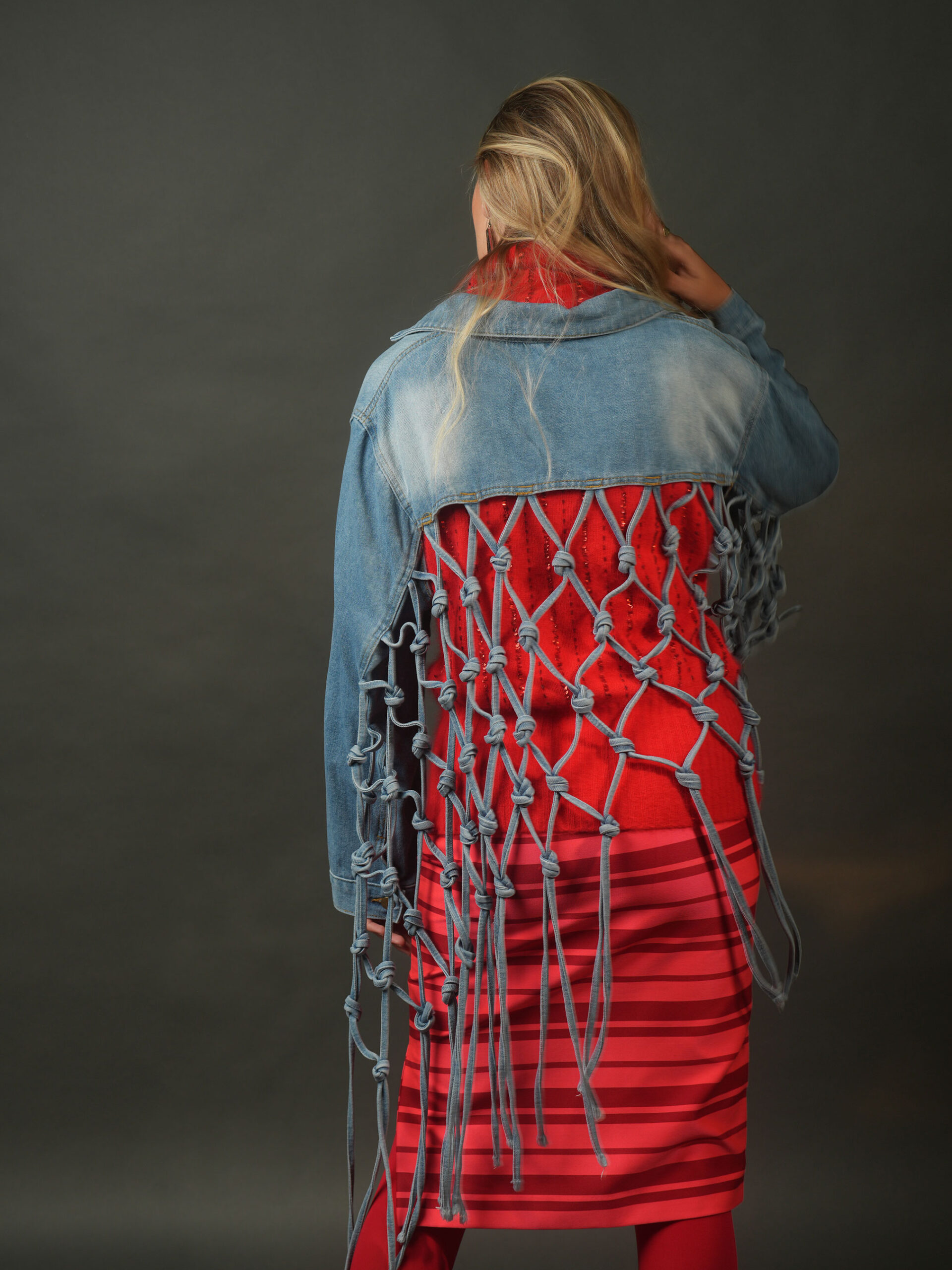 Get creative with this one-of-a-kind upcycled denim jacket, customized by our SPARK + REBEL team! This oversized denim jacket from an unknown designer is all about making a statement. It features bold, oversized tassels on the back and two handy front pockets, with a classic button closure. But we took it a step further! We’ve added two unique brooches on the front snap buttons, so you can switch up your look with ease. This gently loved jacket comes in size S, with measurements of a 38-inch chest, 21-inch sleeves, and an 18-inch length.