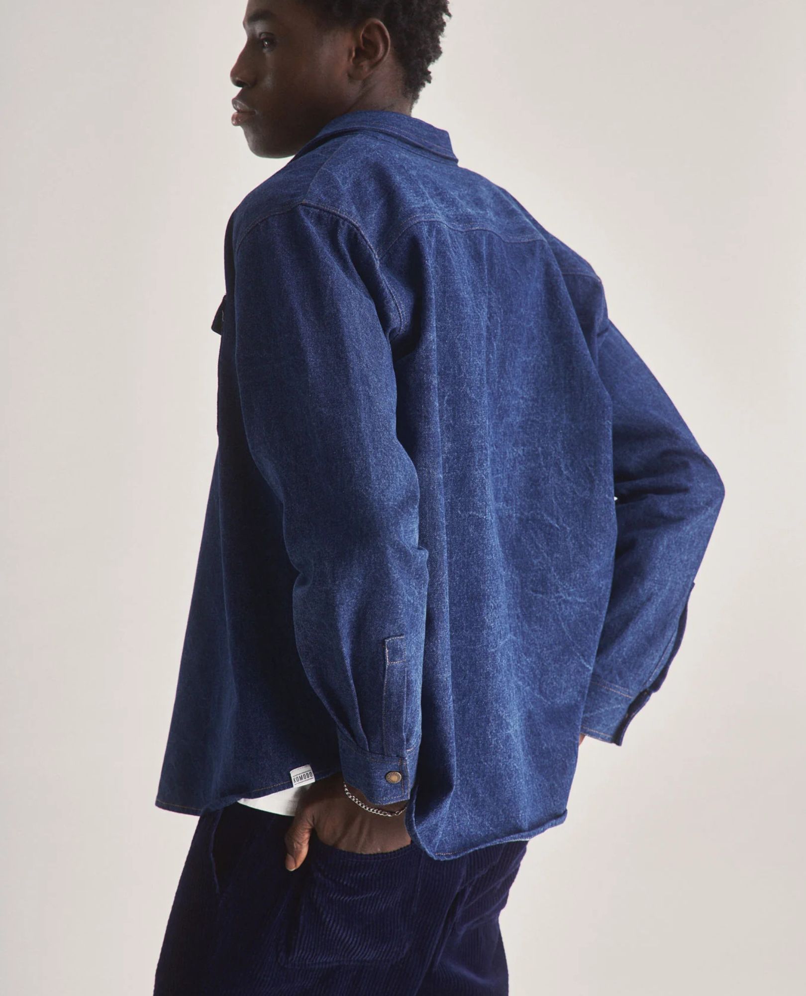 Elevate your style sustainably with the KARDA Organic Cotton Denim Shirt in Dark Denim. Relaxed, durable, and eco-friendly—perfect for versatile, everyday wear.