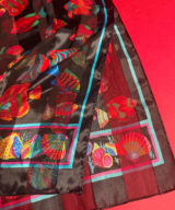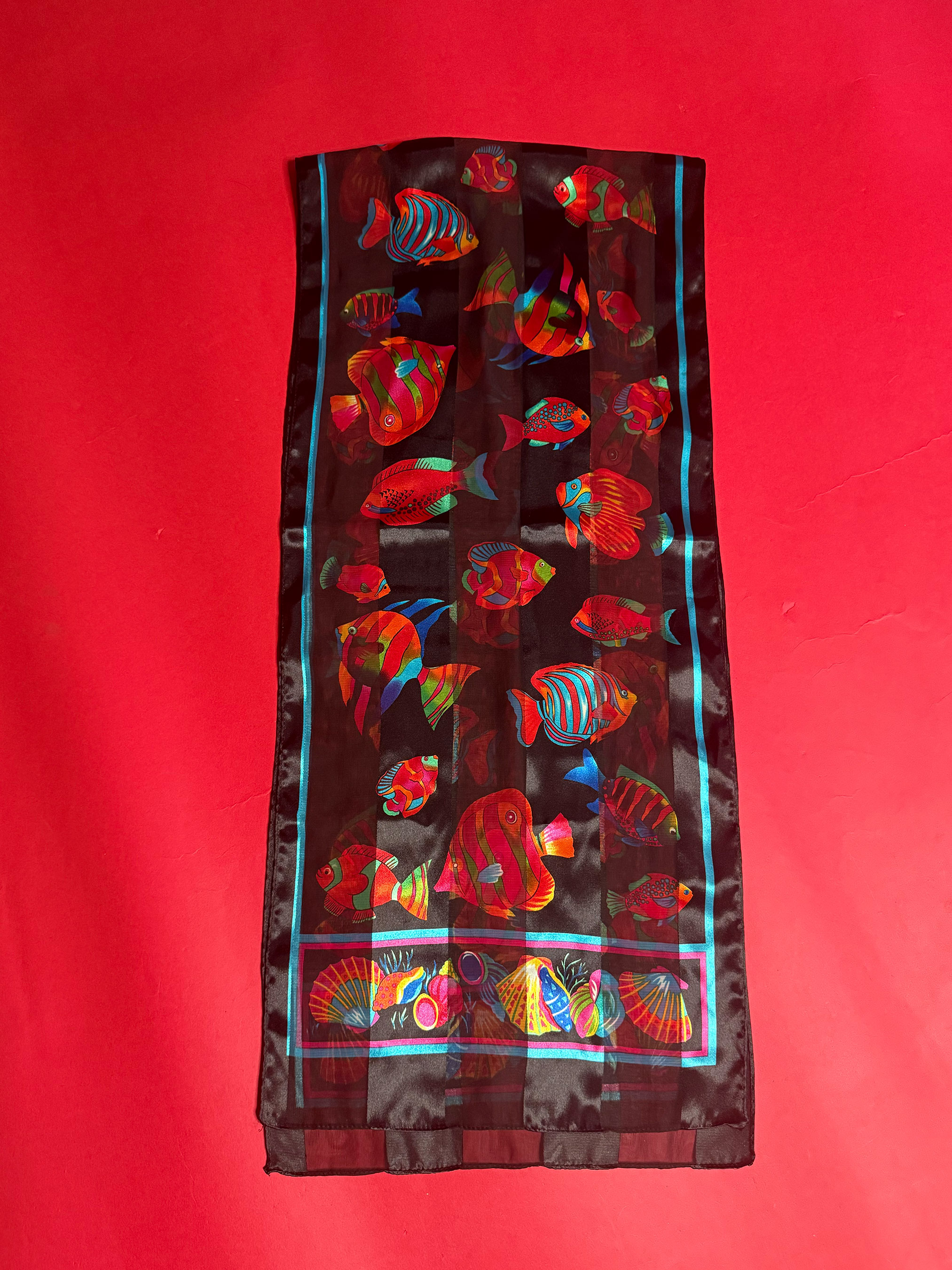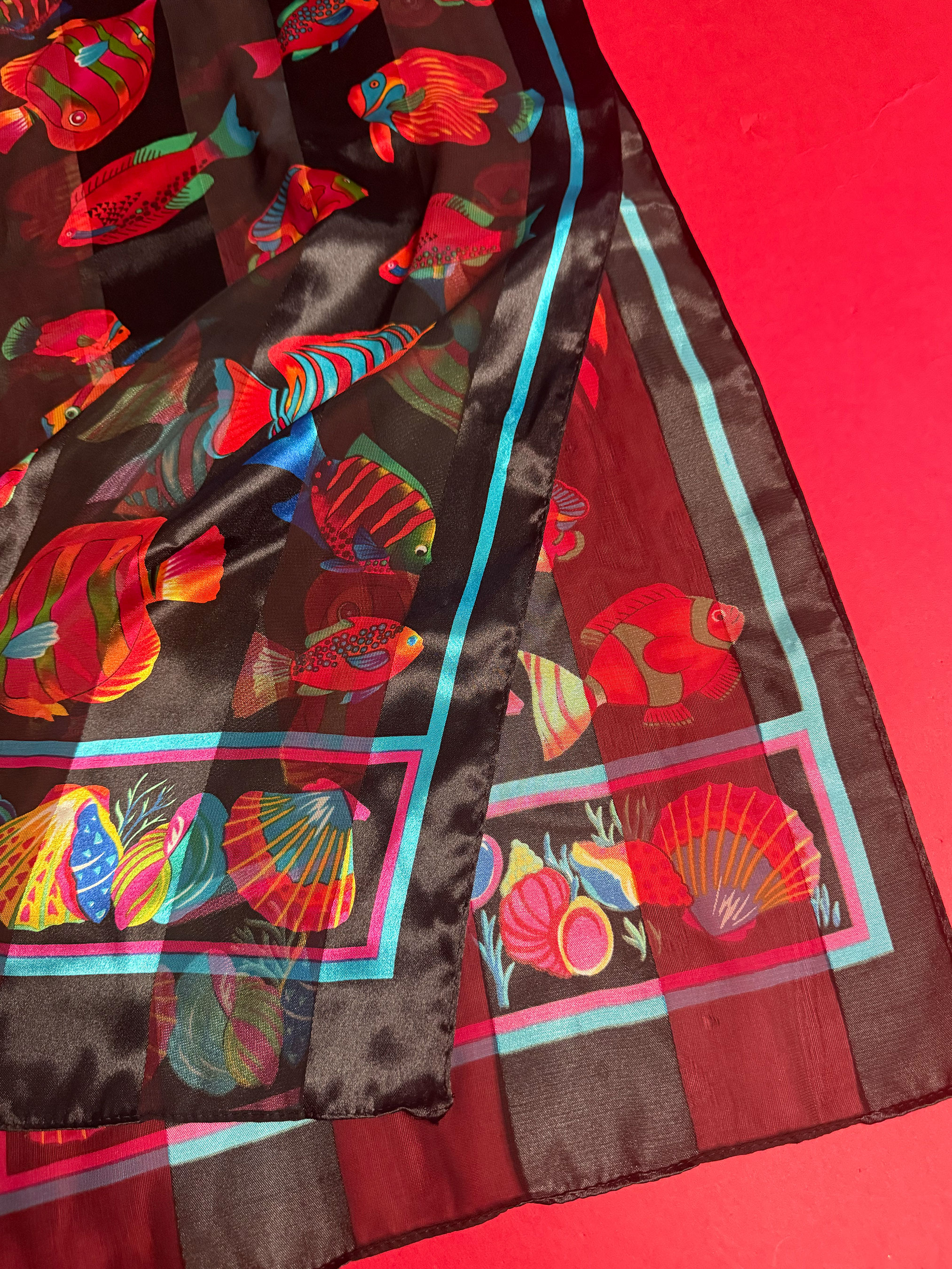 A perfect statement piece for spring and summer, whether you’re dressing up a casual look or adding a pop of color to your wardrobe. This vintage mystery designer find was discovered in a San Diego boutique and feels like silk. Arrives in gently used condition and measures 60 x 13 inches.