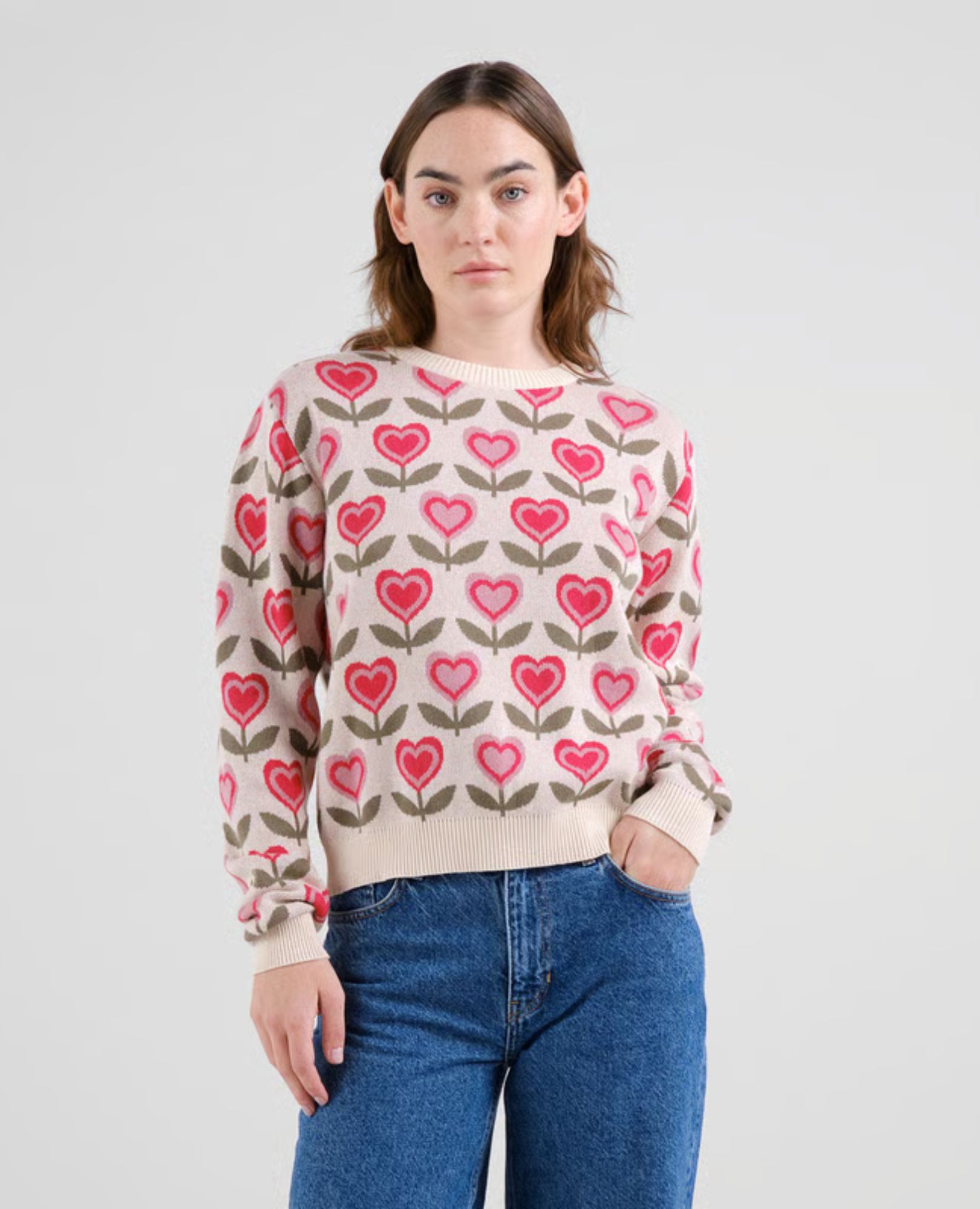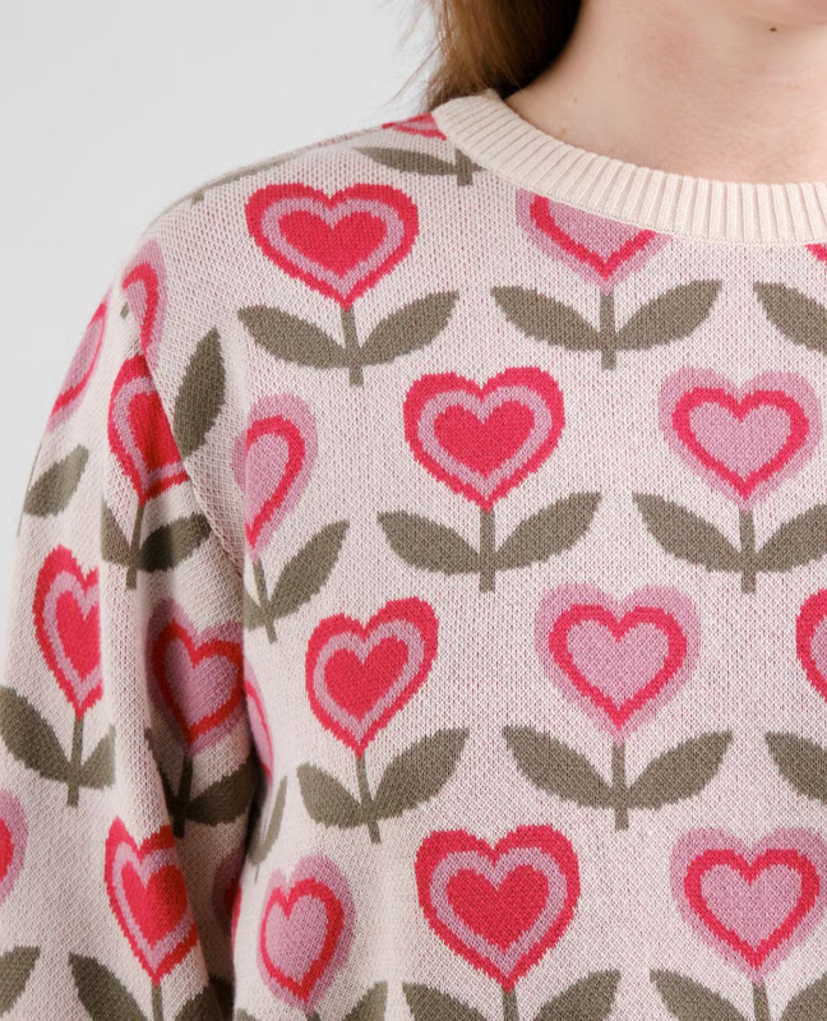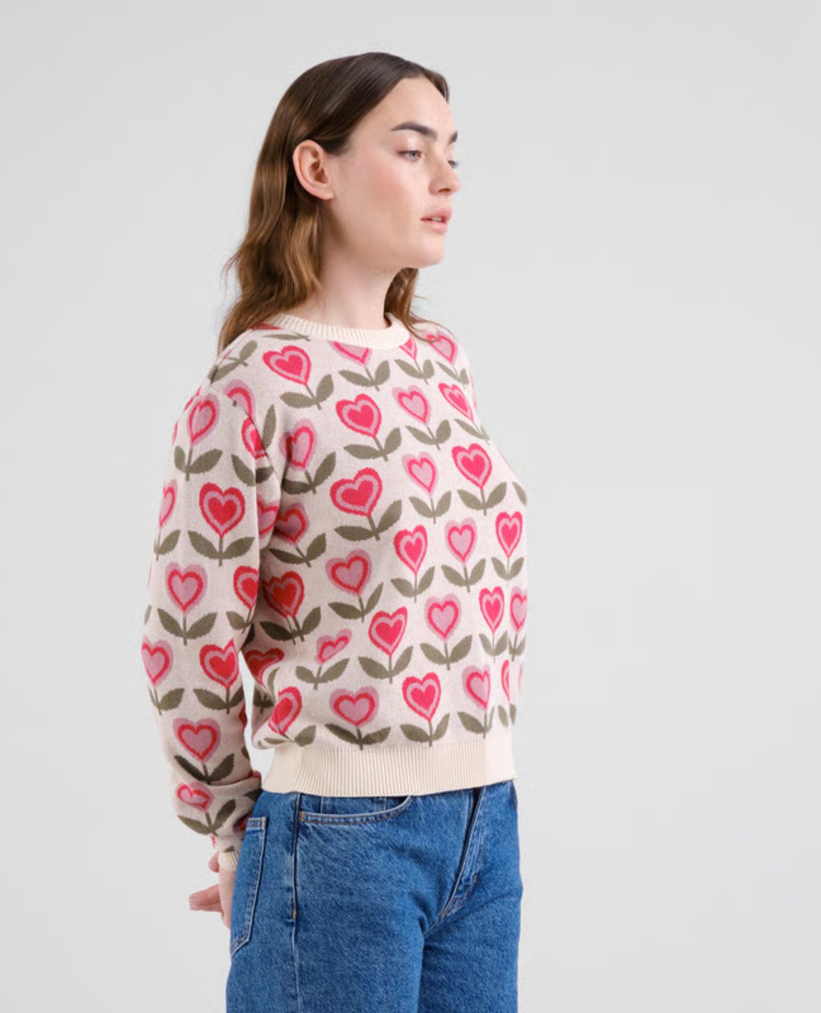 Cozy up in this organic cotton jacquard knit sweater, featuring a relaxed fit and rounded neckline—perfect for everyday comfort.