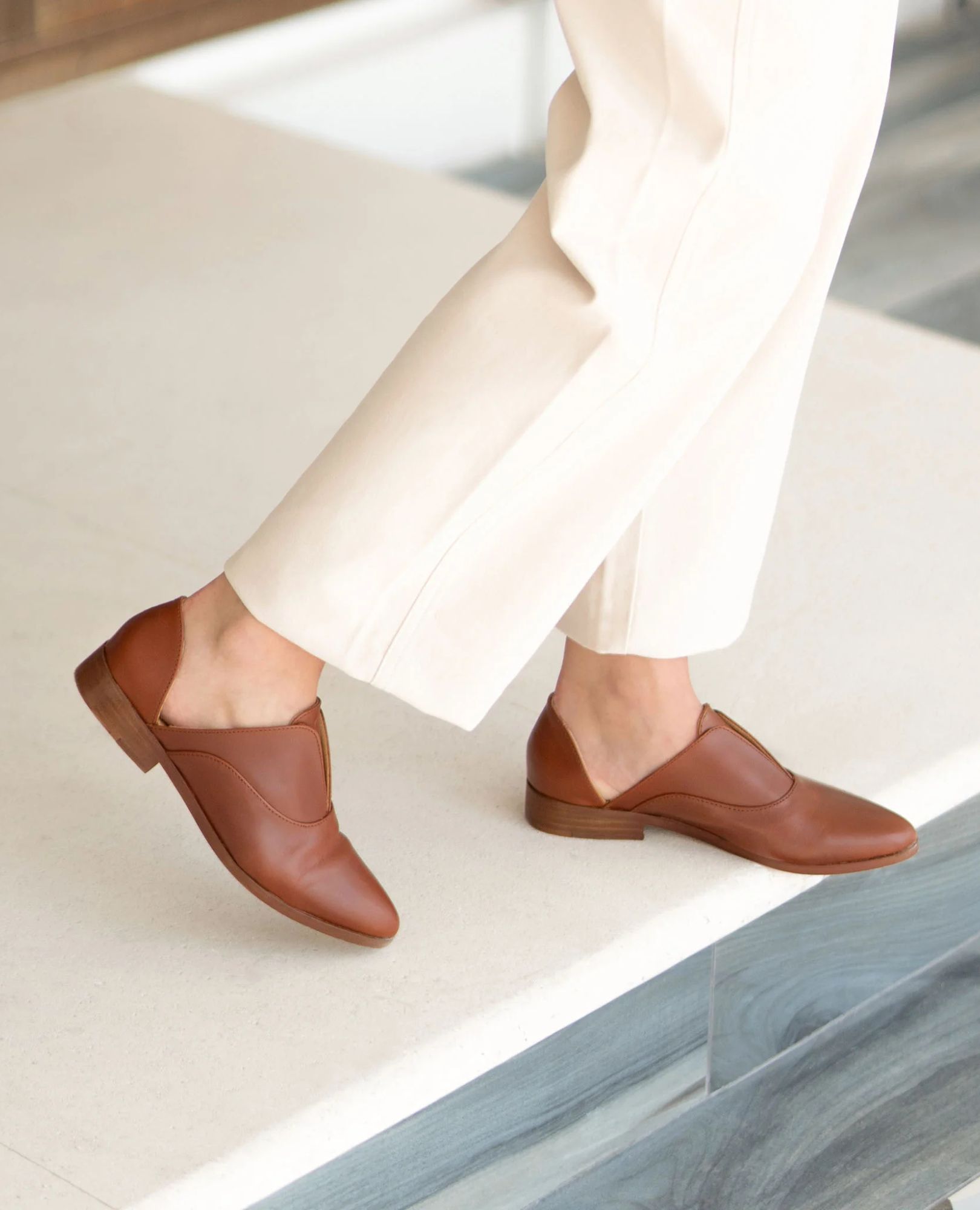 Introducing the revamped best-selling oxford, now even better! This versatile shoe transitions effortlessly from work to play with its timeless charm and all-day comfort. Features include a unique d’Orsay design, slip-on convenience with internal elastic, premium cushioned insoles, breathable leather, and a durable leather and rubber outsole. Certified by the Leather Working Group and committed to 100% living wages and 0% net carbon.