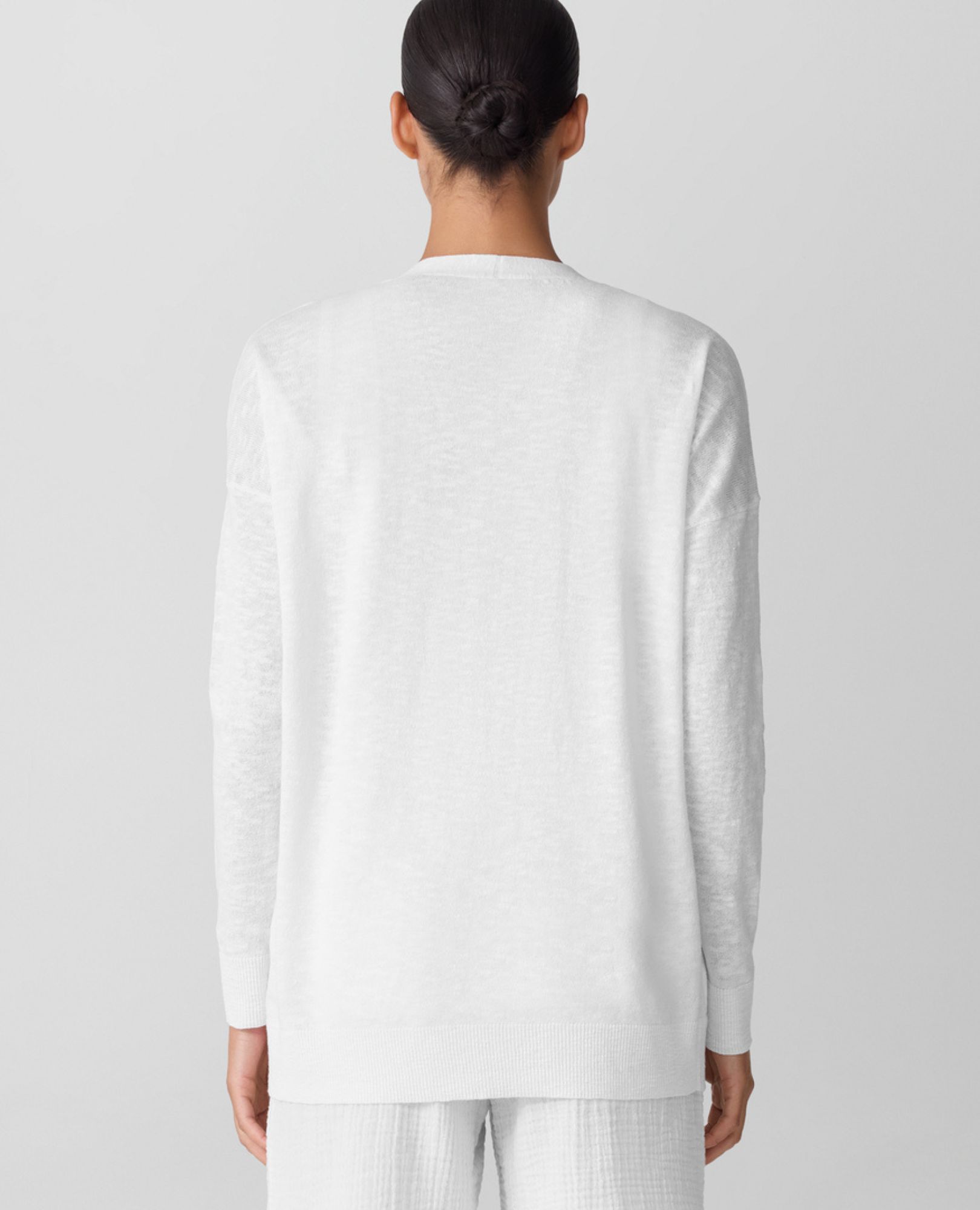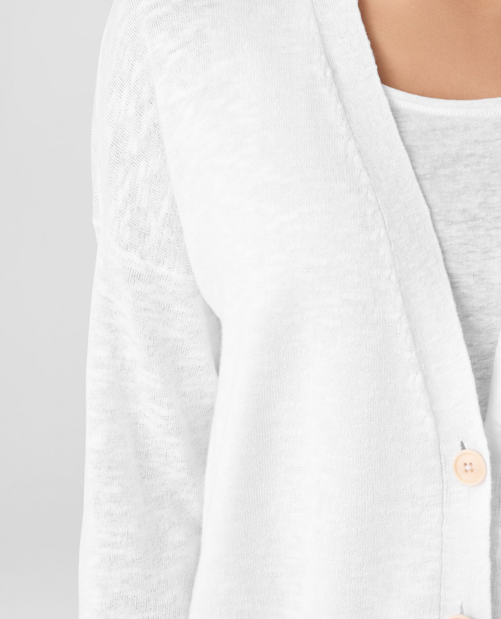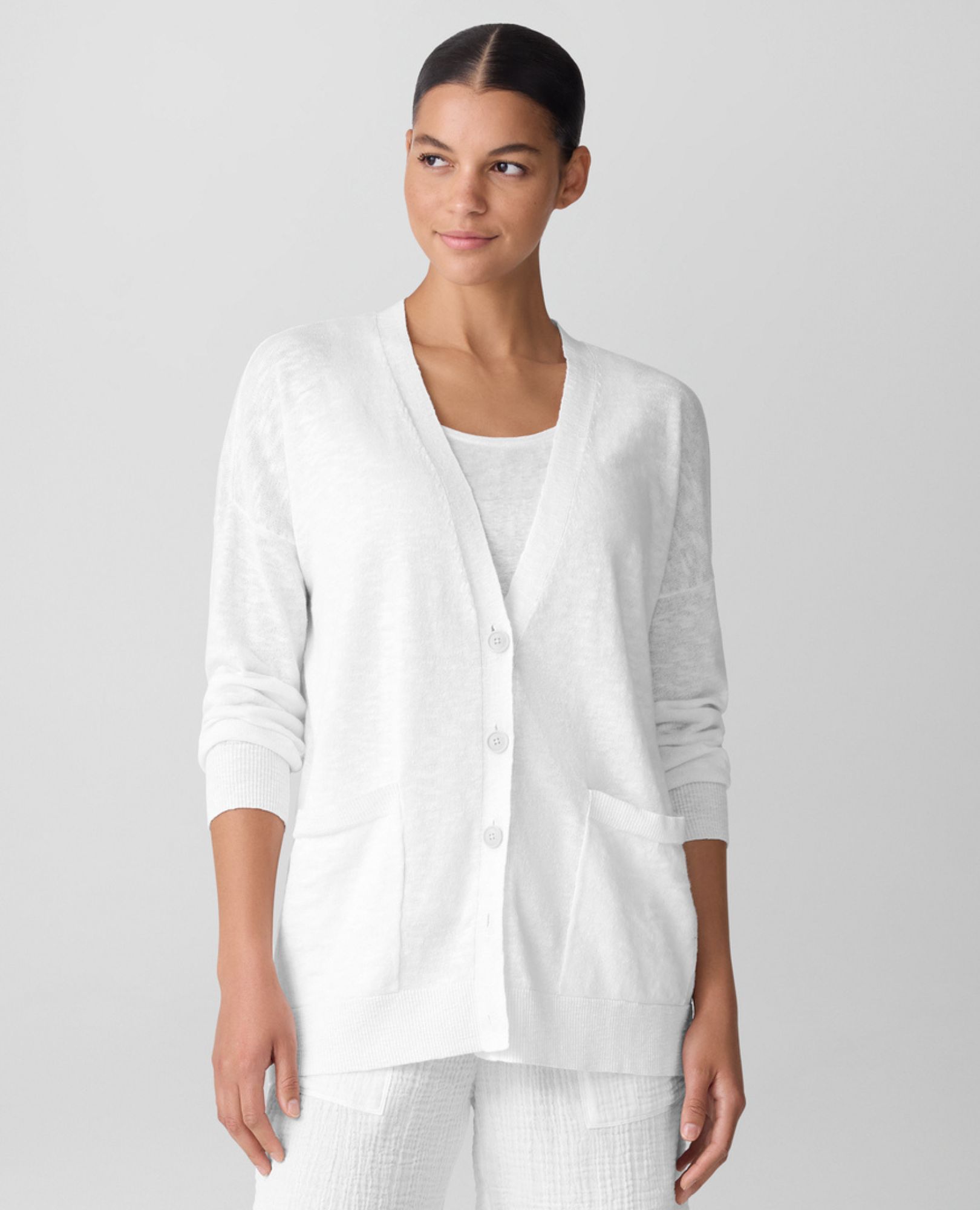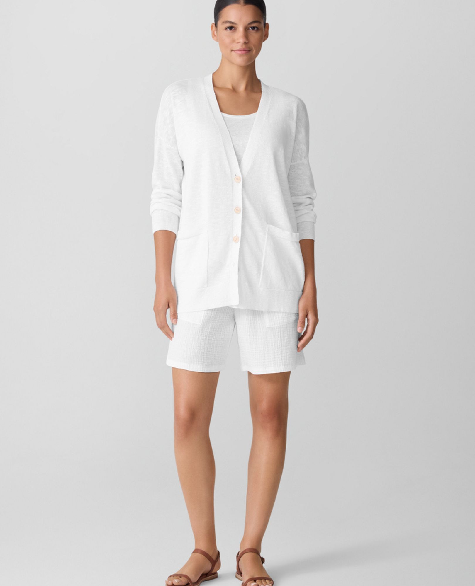 Versatile and lightweight, the Mikella V-neck cardigan in organic cotton and linen features patch pockets and a relaxed, draped fit. Perfect for any season.