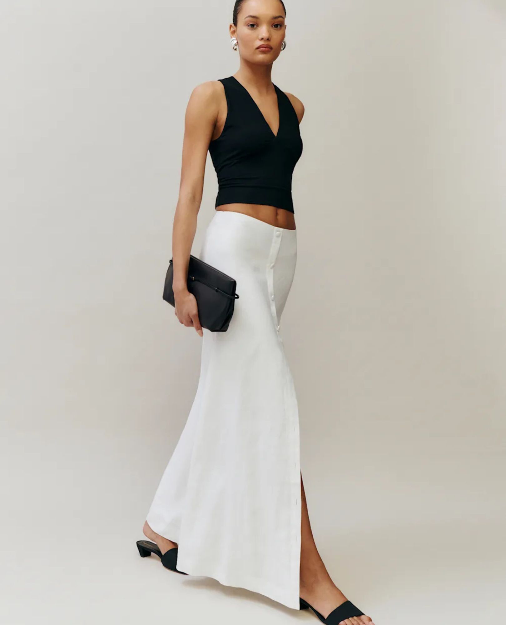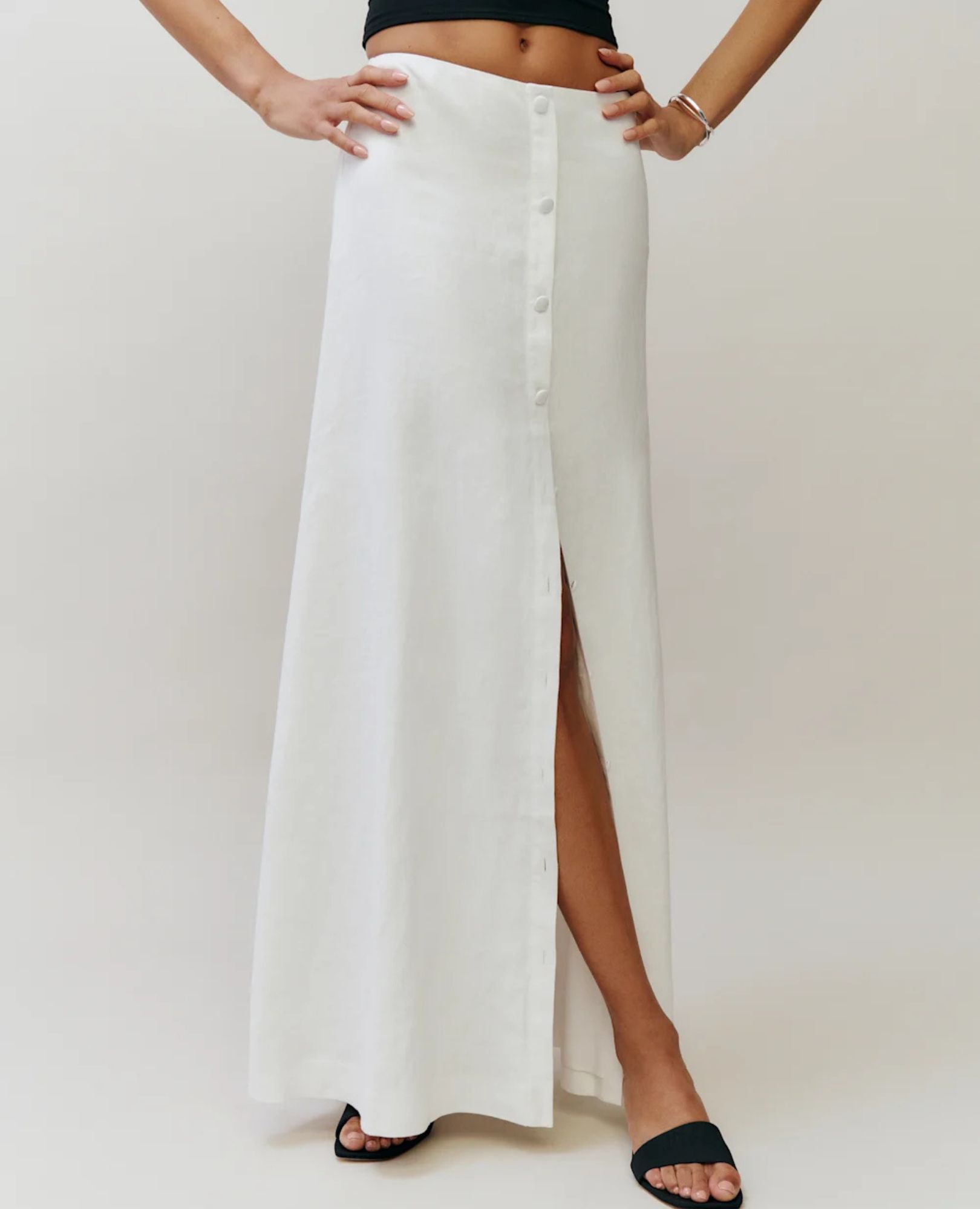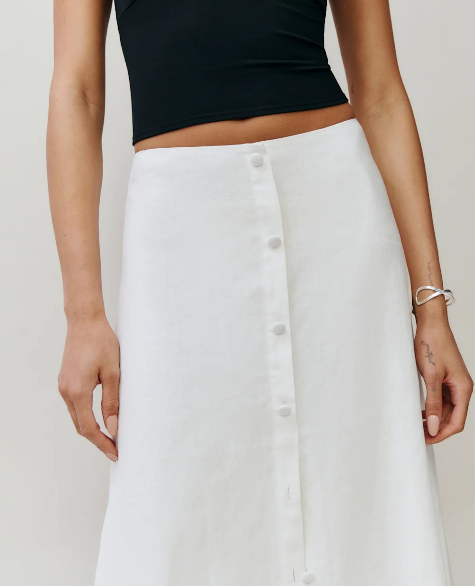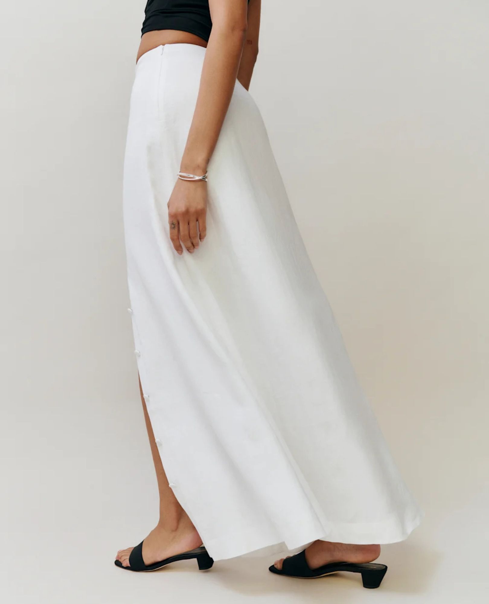 Say hello to the Andi Linen Maxi Skirt—your go-to for easy, breezy dressing. With a flattering fitted waist and flowy A-line silhouette, it’s made from 100% lightweight linen that keeps you cool and comfy all day. Available in three beautiful shades, it’s a warm-weather staple you’ll wear on repeat.