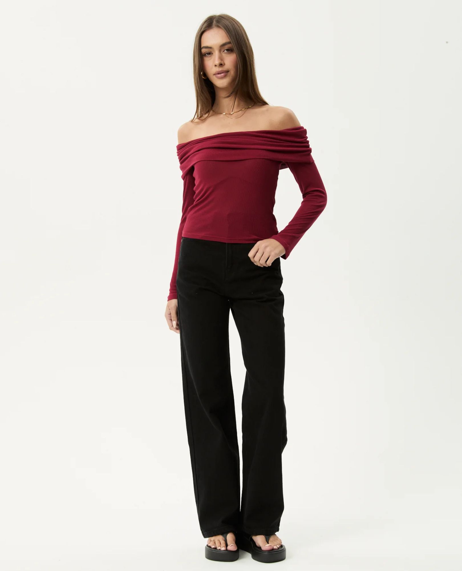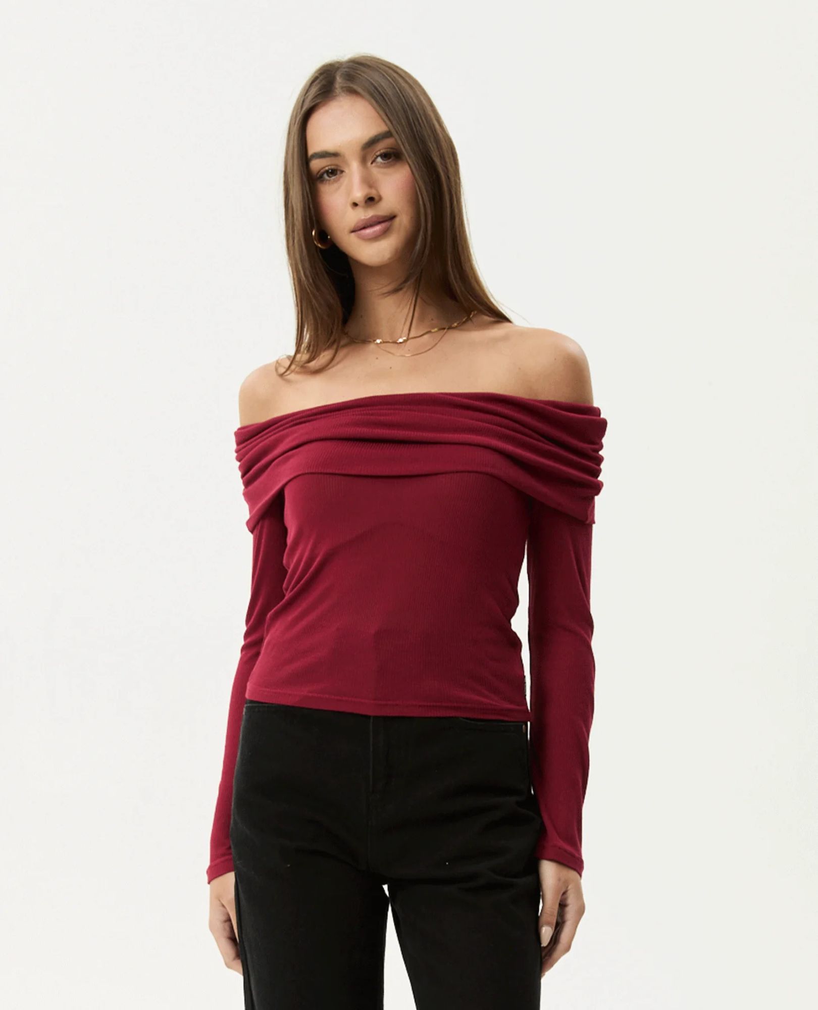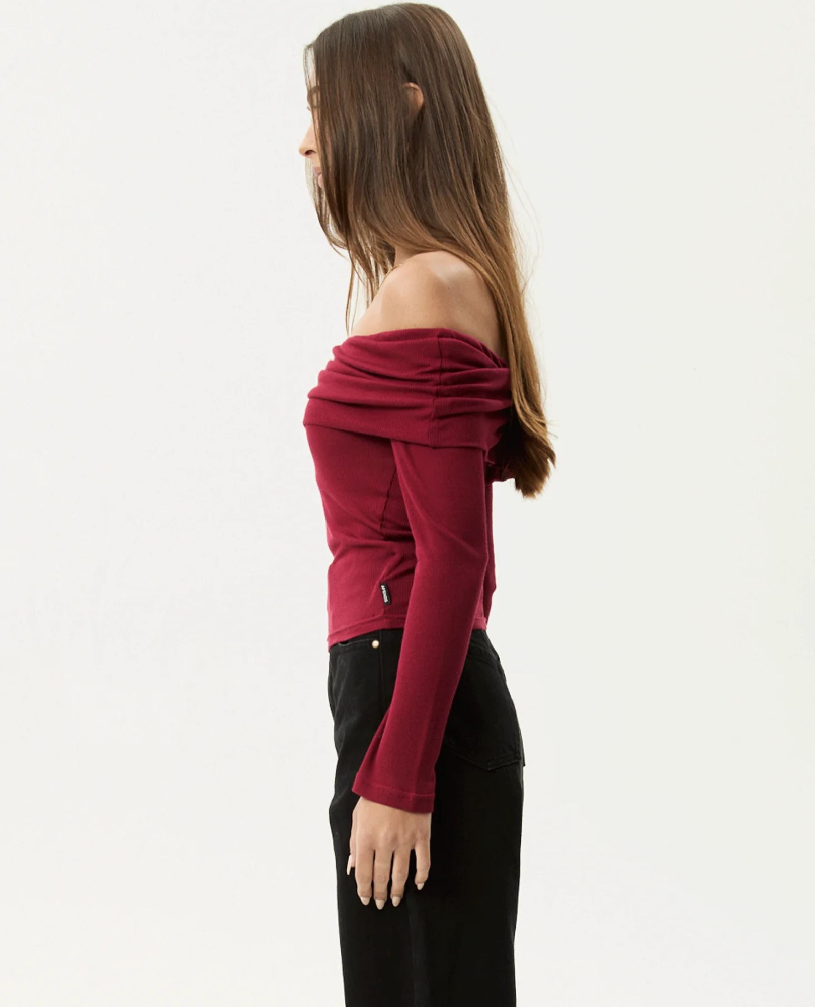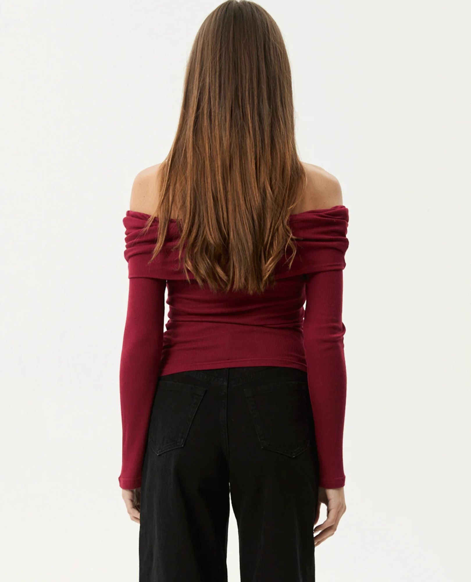 Meet the Becket off-shoulder top, crafted from 100% bamboo—soft, sustainable, and getting even cozier over time. Flattering fit with textured rib overlay for added style.