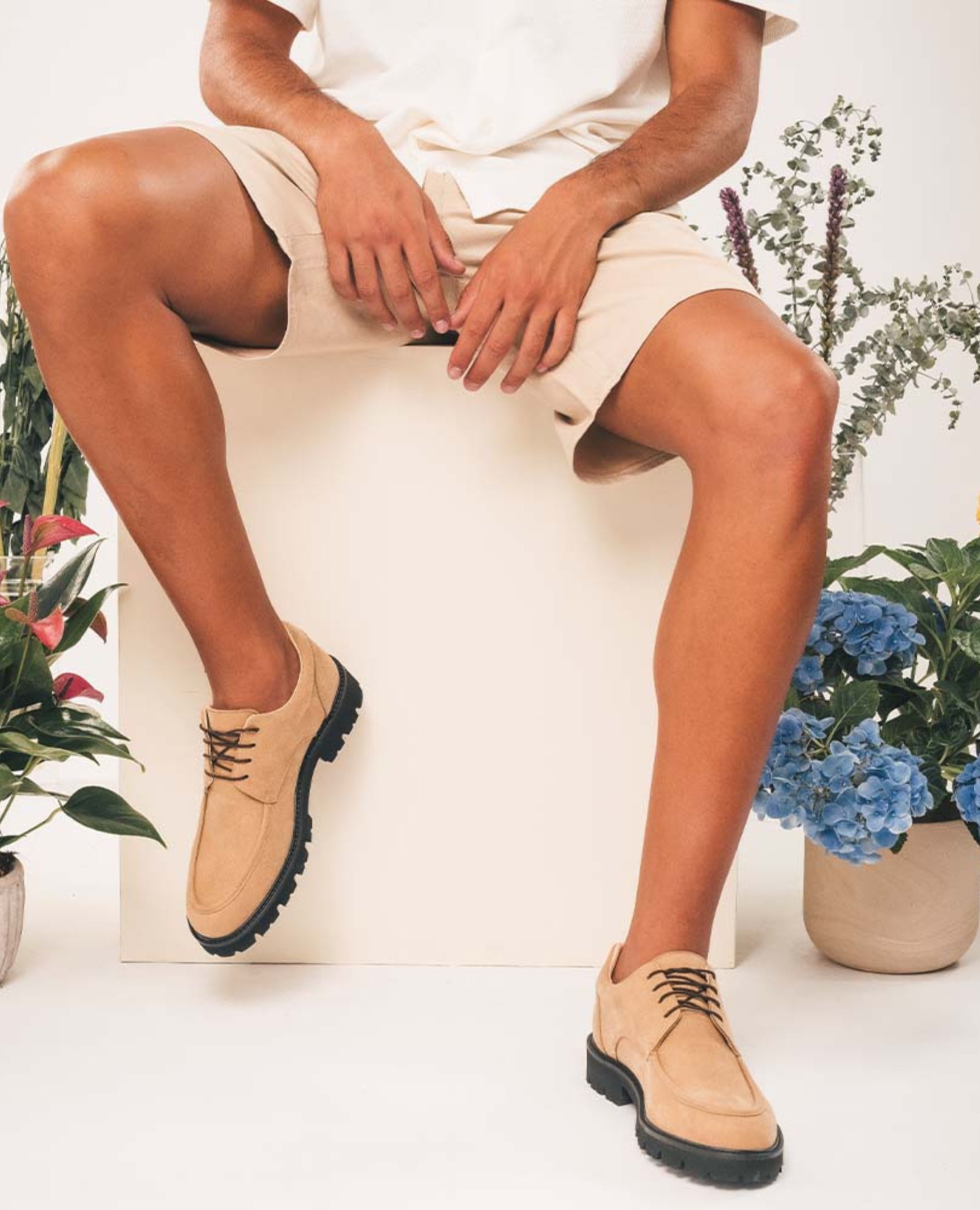 Step up your style with the sleek men’s derby shoe, crafted from natural vegan suede microfiber in a chic beige. This modern design combines sophistication with ethical flair, offering a cruelty-free alternative that doesn’t compromise on quality or comfort. Elevate your footwear game while embracing sustainability.