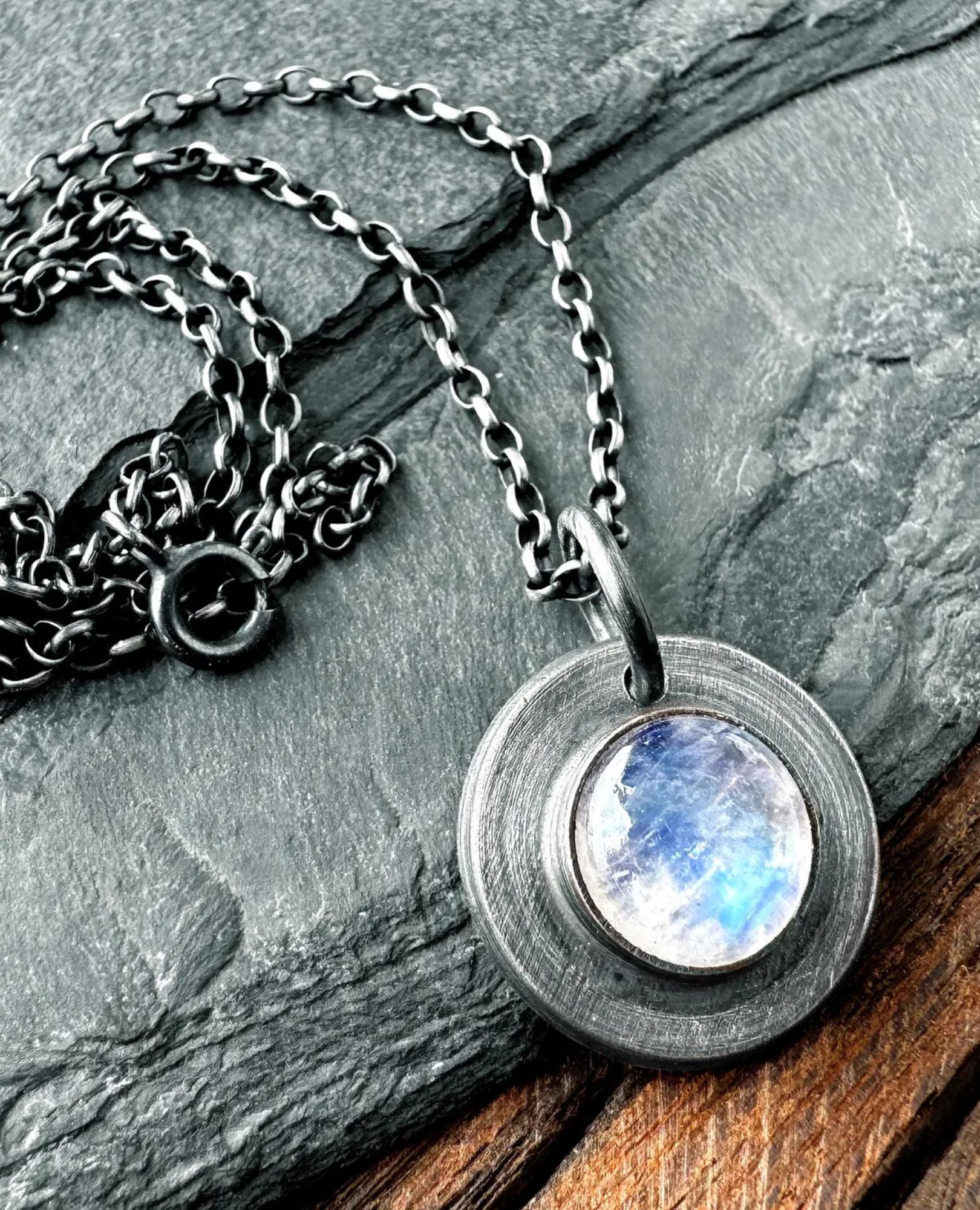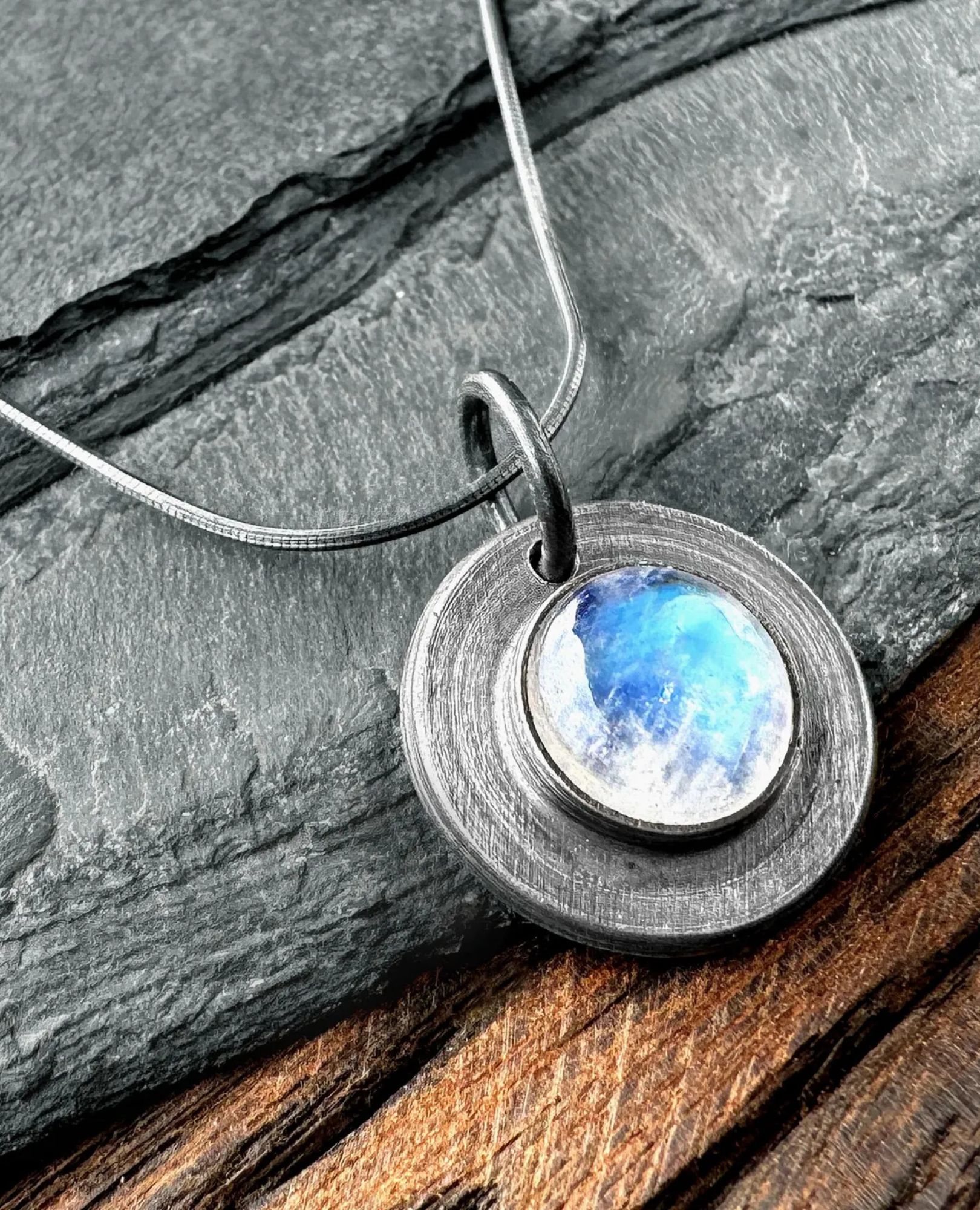 Discover the subtle “Tribal” pendant, crafted from oxidized 925 silver and natural labradorite with stunning blue reflections. Perfect as an accessory to matching earrings, bracelets, or rings from the same collection.
