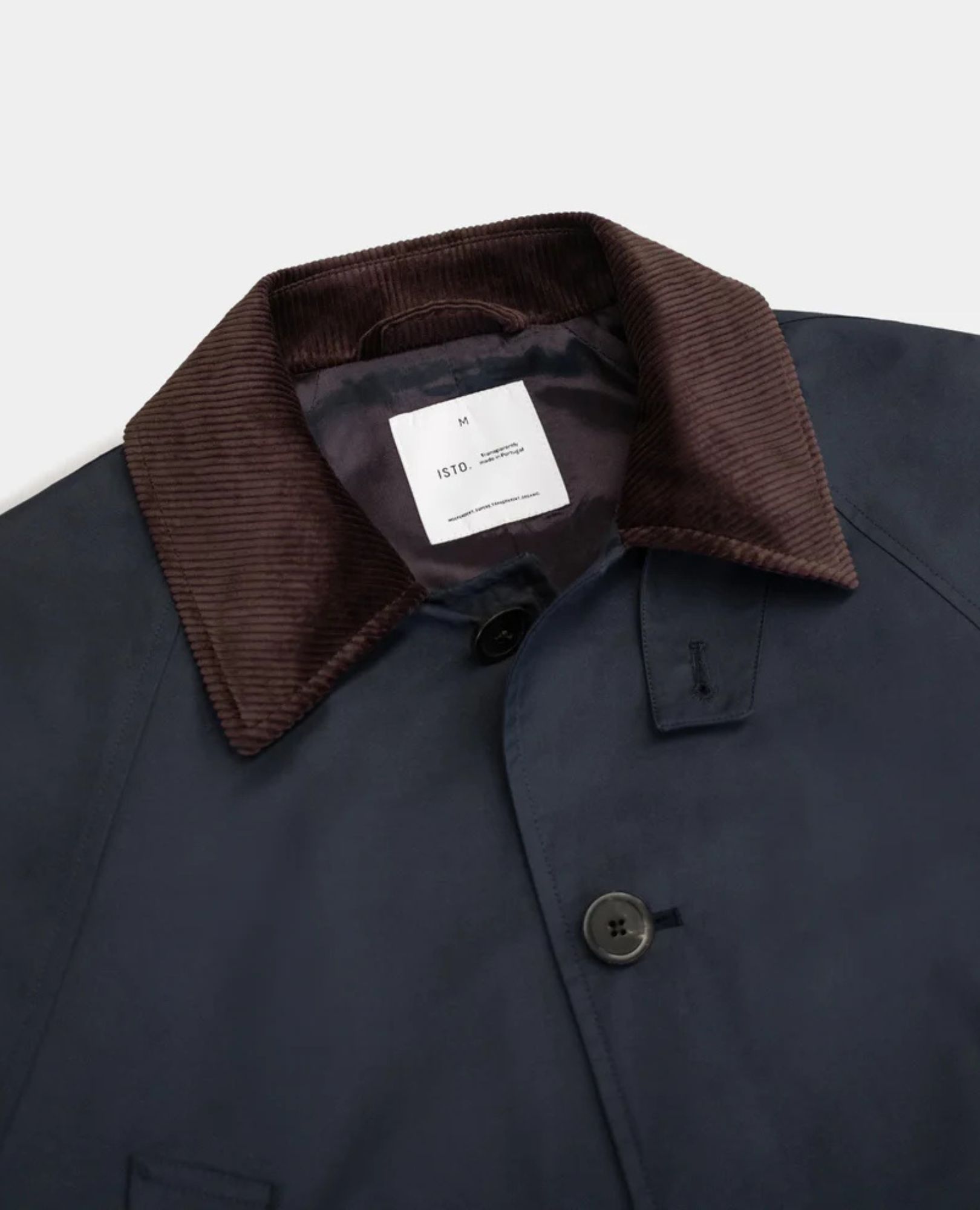 Layer it over a chunky knit sweater and dark denim. Complete the look with leather boots. The corduroy collar adds a touch of refined texture that elevates the entire outfit.