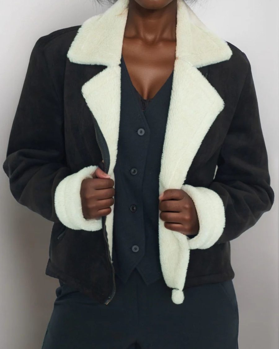 This metallic jacquard coat from Kate Spade is the stuff of dreams, complete with fearless faux fur trim at the collar and cuffs. Crafted from a blend of 98% polyester and 2% metallic magic, this beauty has a lining that’s like a silky secret – made of 96% polyester with a dash of 4% elastane for that comfy stretch.