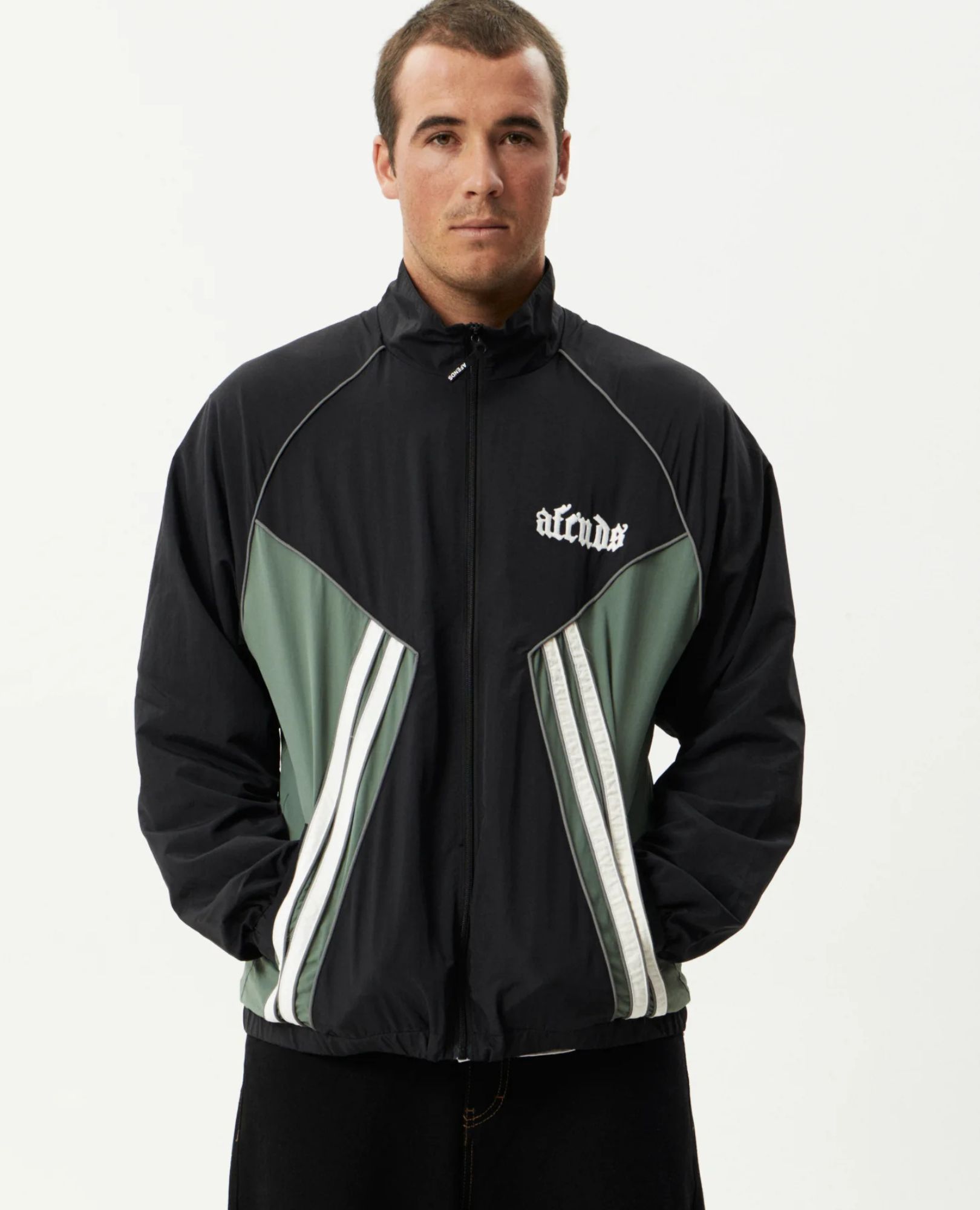 Stay stylish and dry in the Sporting Spray Jacket — made from water-repellent recycled nylon, with contrast raglan sleeves, reflective piping, and practical details.