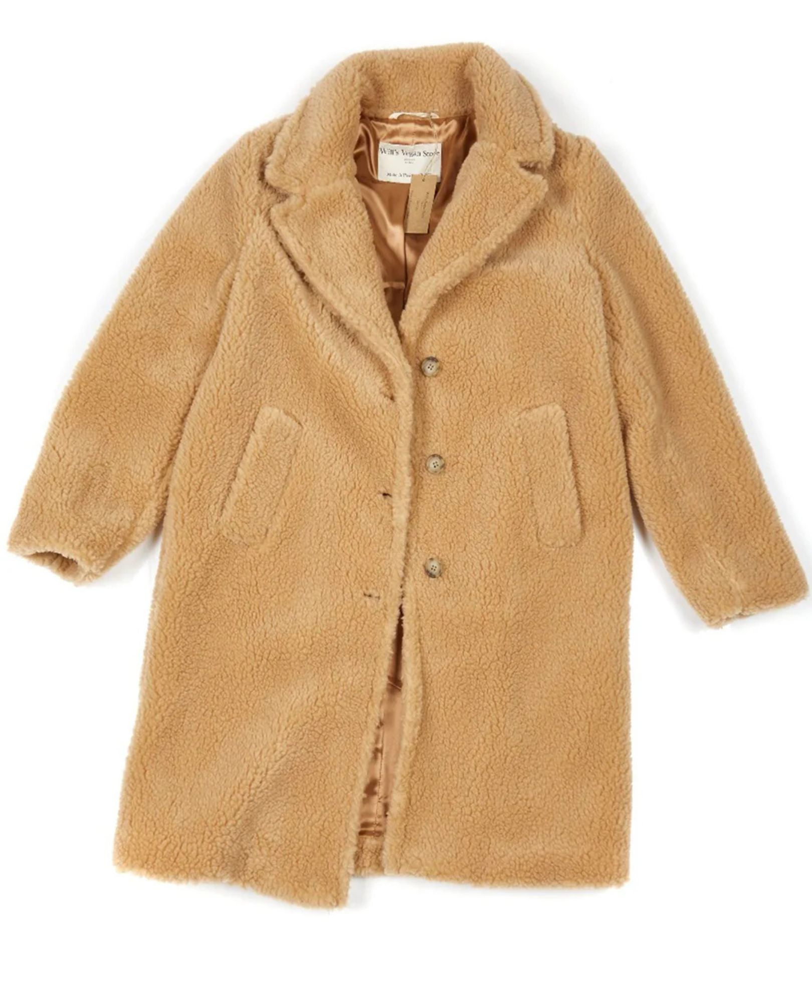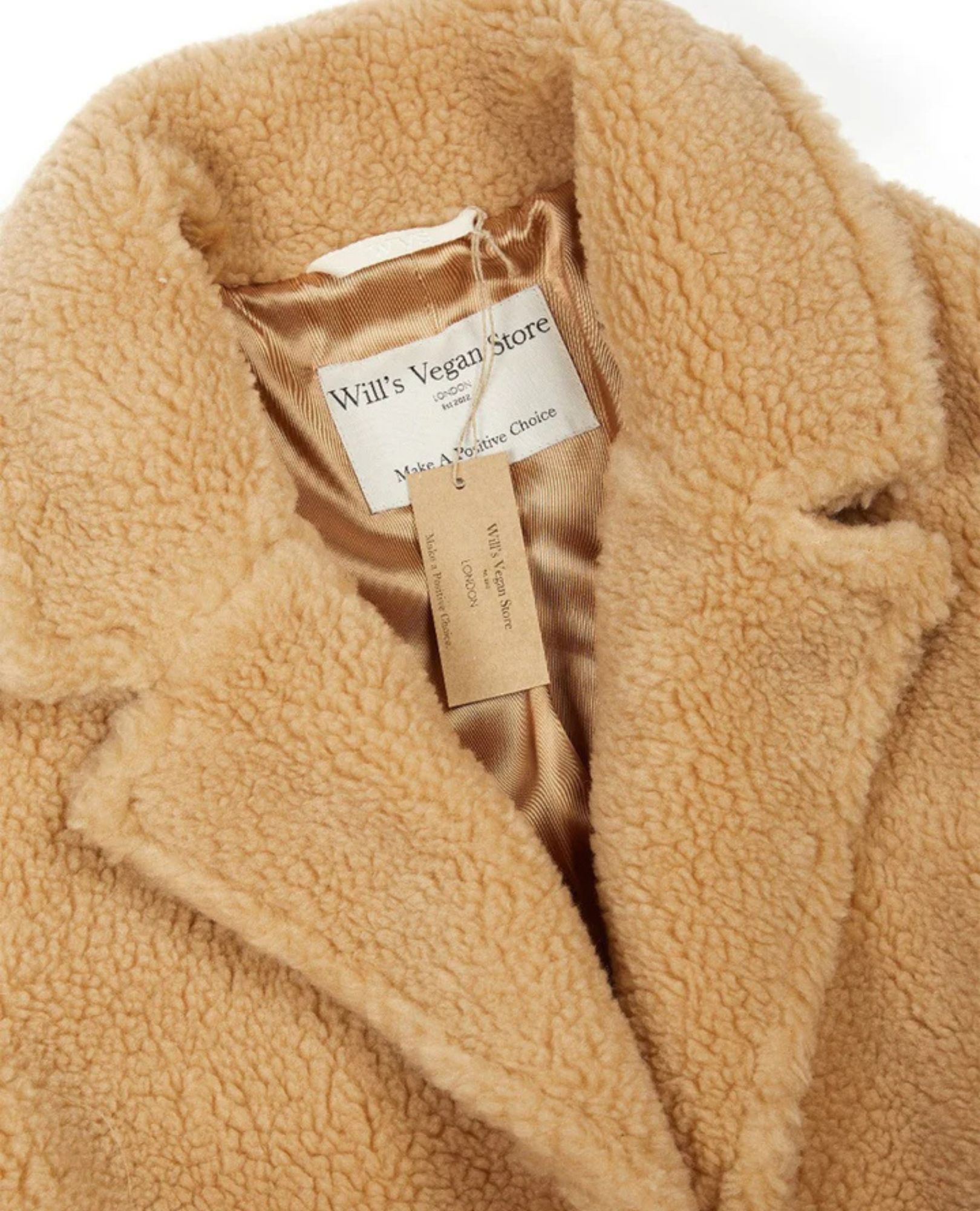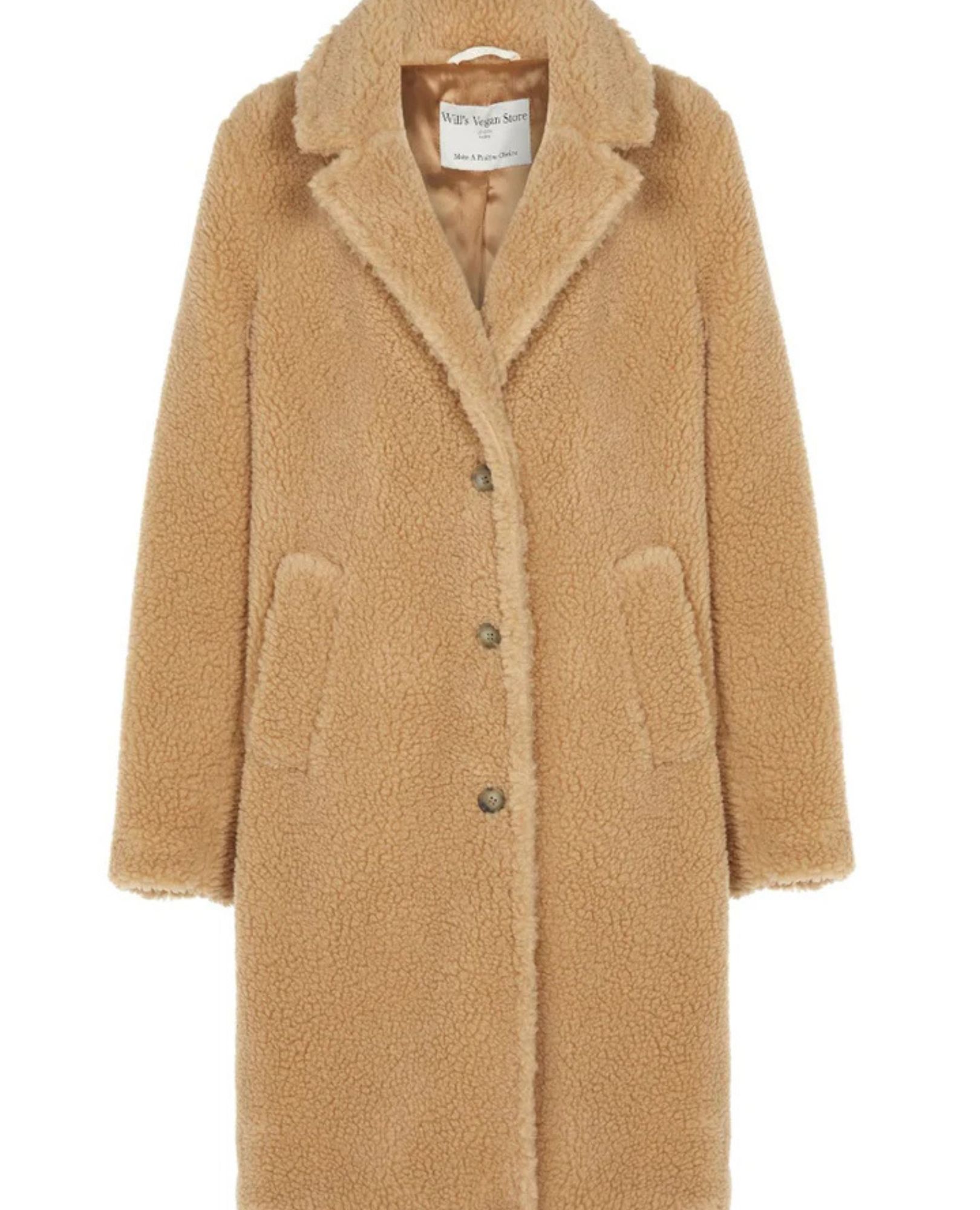 Wrap yourself in luxury with the recycled teddy coat, made from 100% Italian recycled polyester. Soft, cozy, and perfect for snuggling, it features a smooth viscose lining for easy layering and two outside slip pockets for convenience.