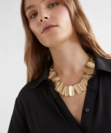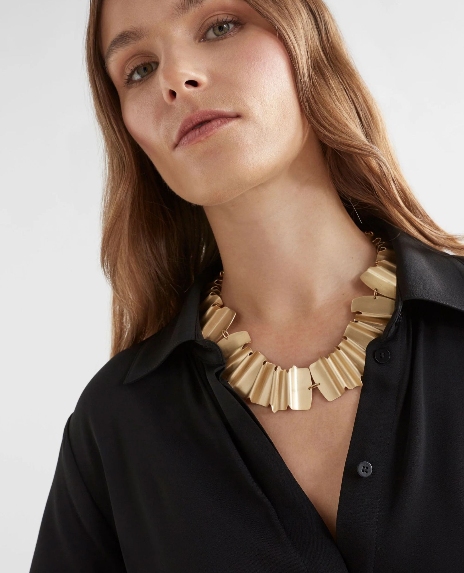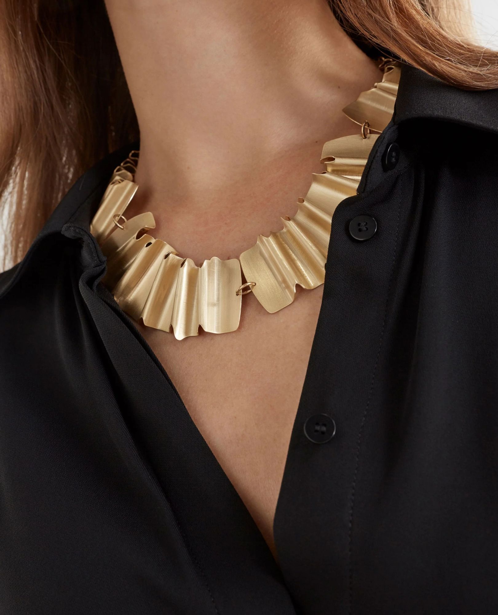 Make a statement with the Eimii Necklace — a blend of glass and acetate beads set in shiny metal, linked with a bold chain and a chunky mesh clasp. Perfect to elevate a simple look.