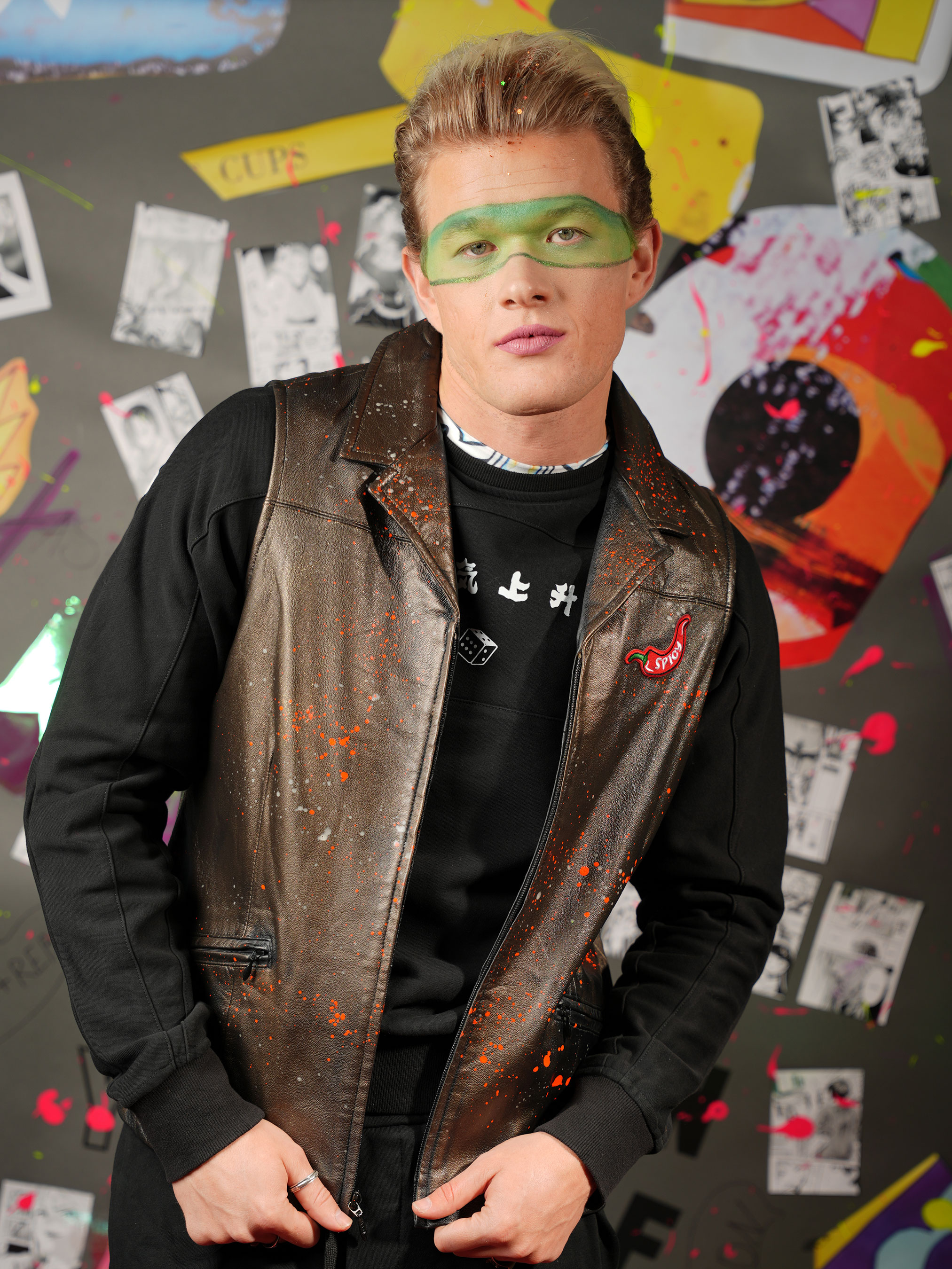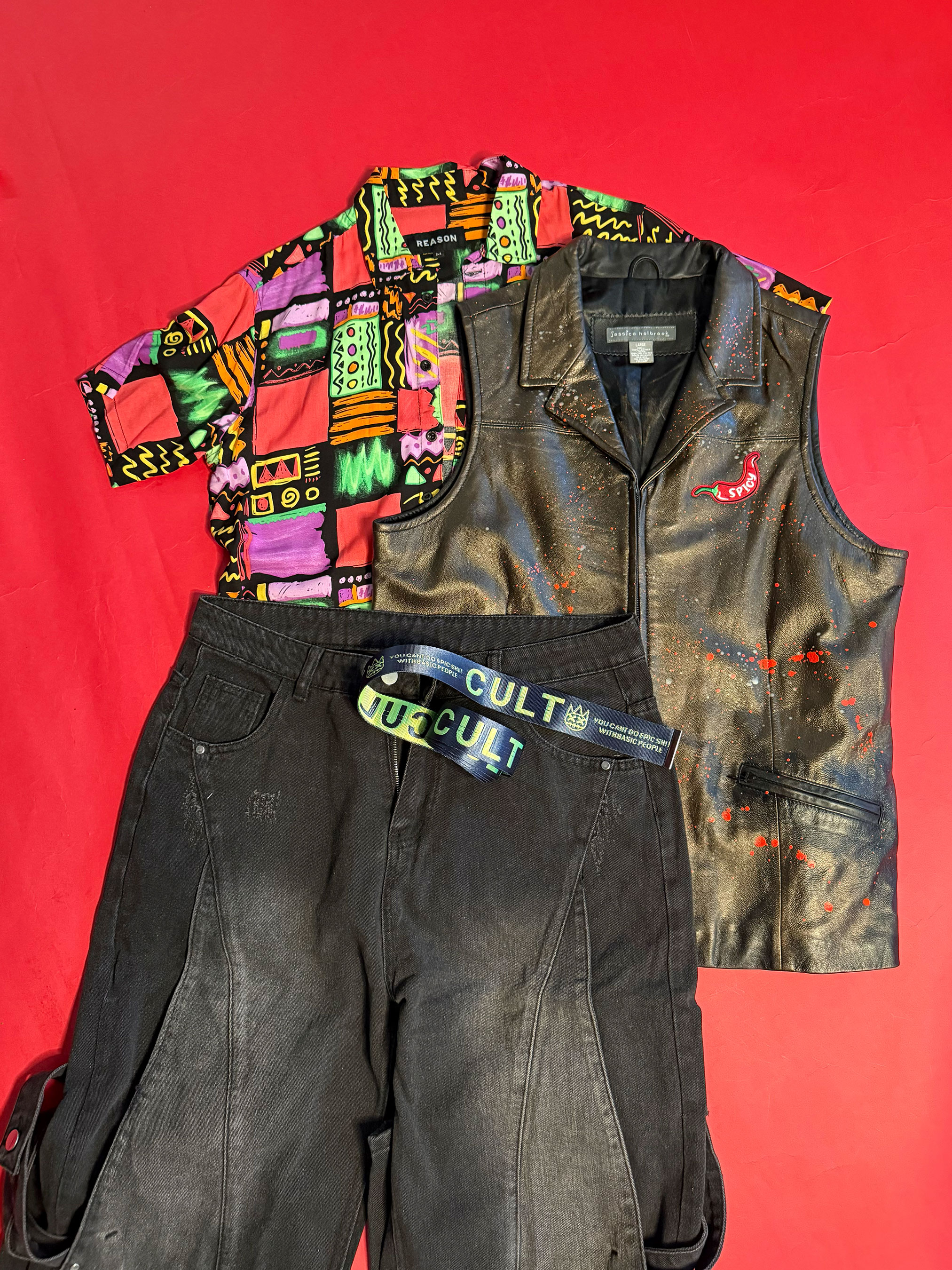 Tuck in the shirt, leave the vest open, and cuff the jeans with chunky sneakers or combat boots. Add layered chains and you're ready to stomp through the city or dance at an underground gig.