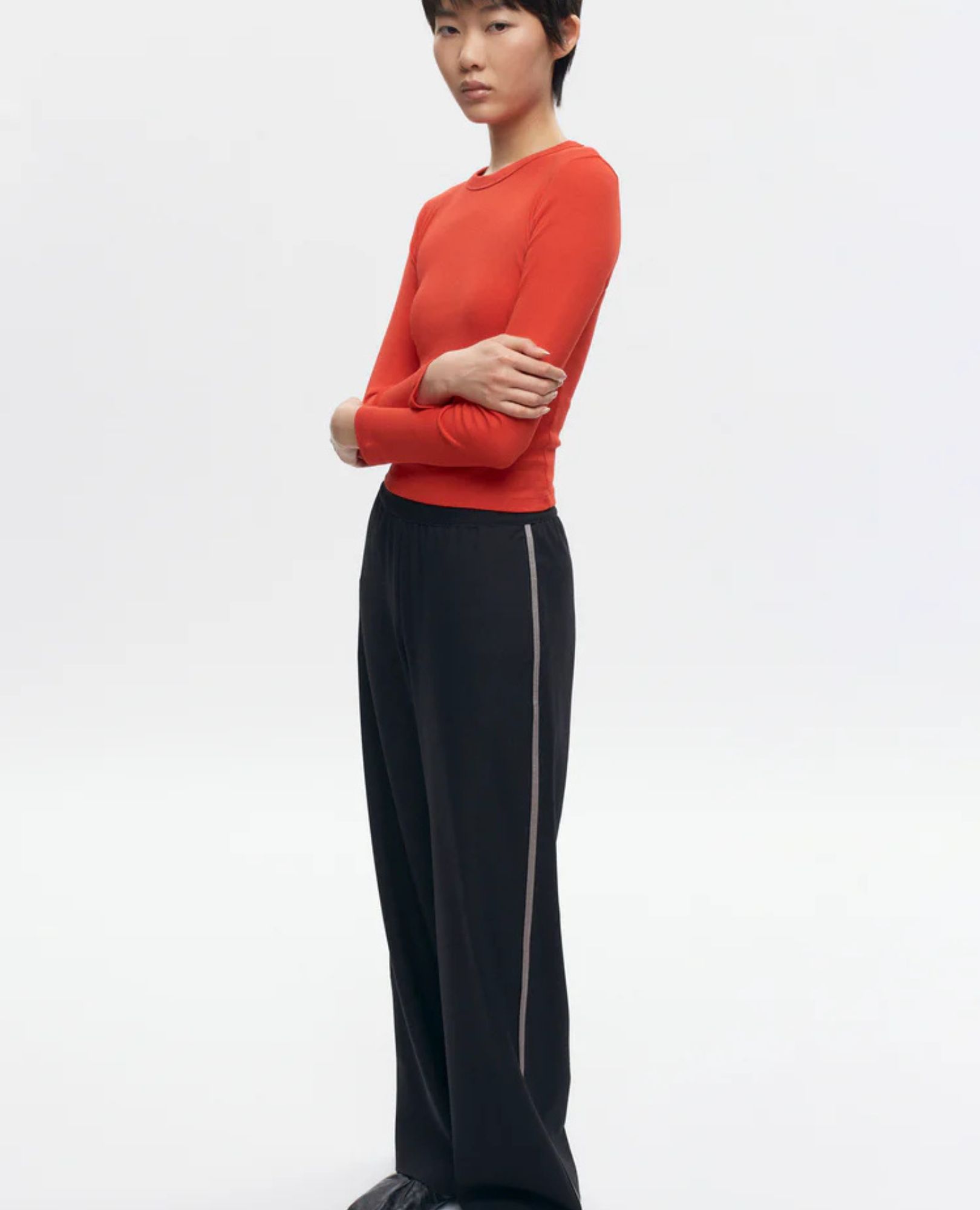Pair with a fitted tank and sneakers for off-duty cool, or add a structured blazer and heels to turn sporty into sharp.