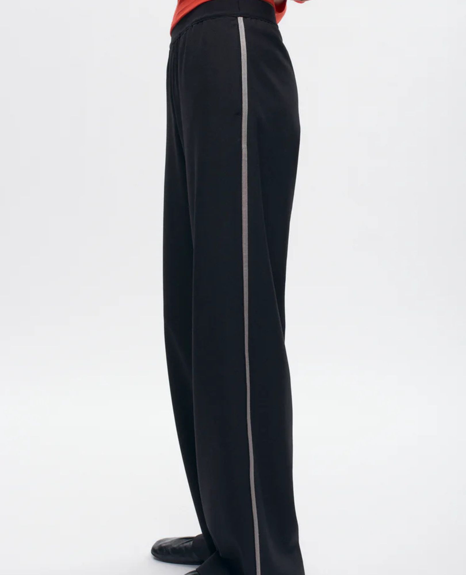 Relaxed pull-on fit with a mid-to-low rise and elastic waistband for easy comfort. Inspired by vintage sport track pants, finished with bold contrast side stripes for that elevated throwback vibe.