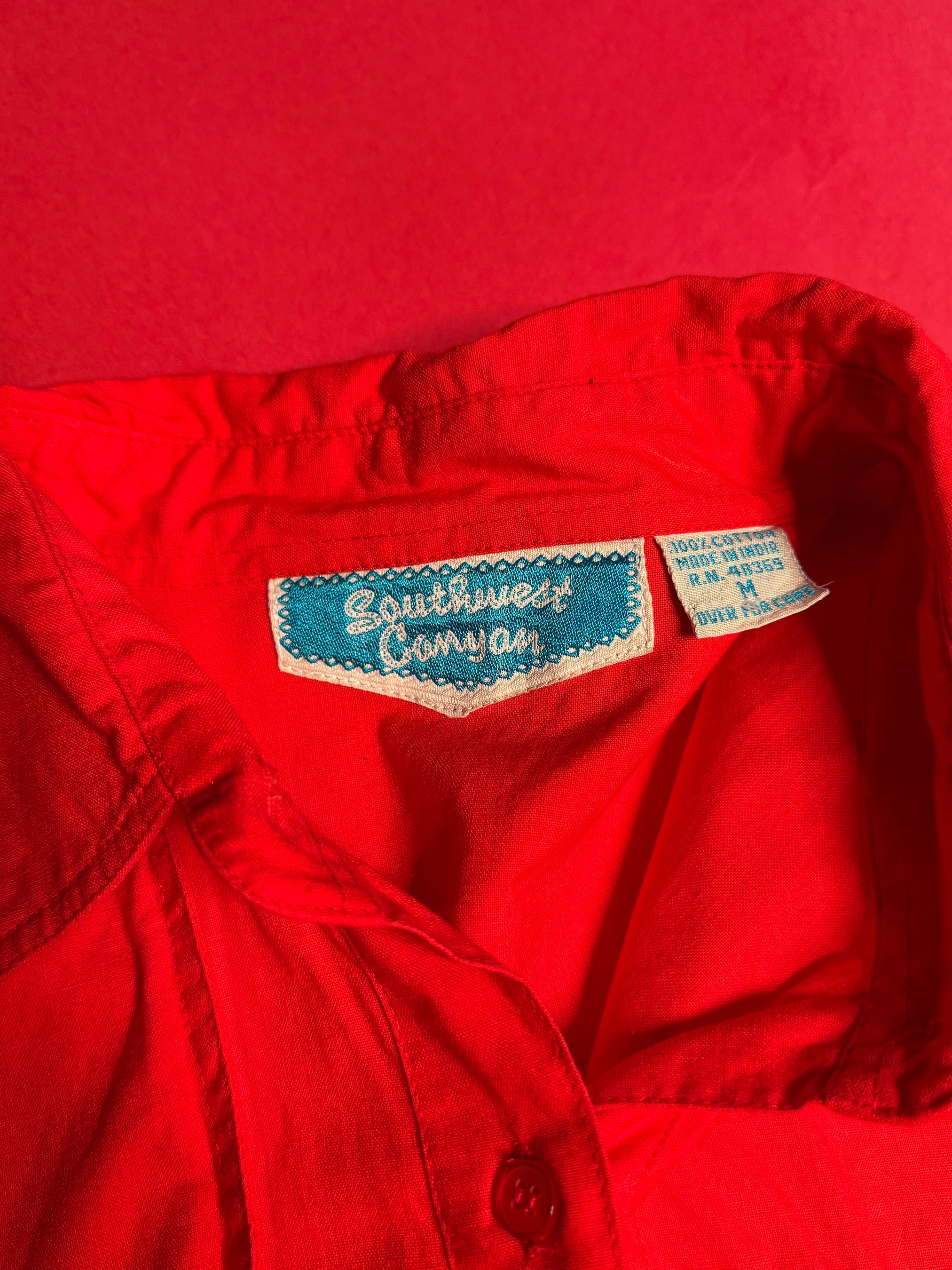 This Southwest Canyon blouse is made from 100% breathable cotton, making it both comfortable and effortlessly stylish. The intricate beaded embellishment on the front adds a handcrafted, one-of-a-kind touch.