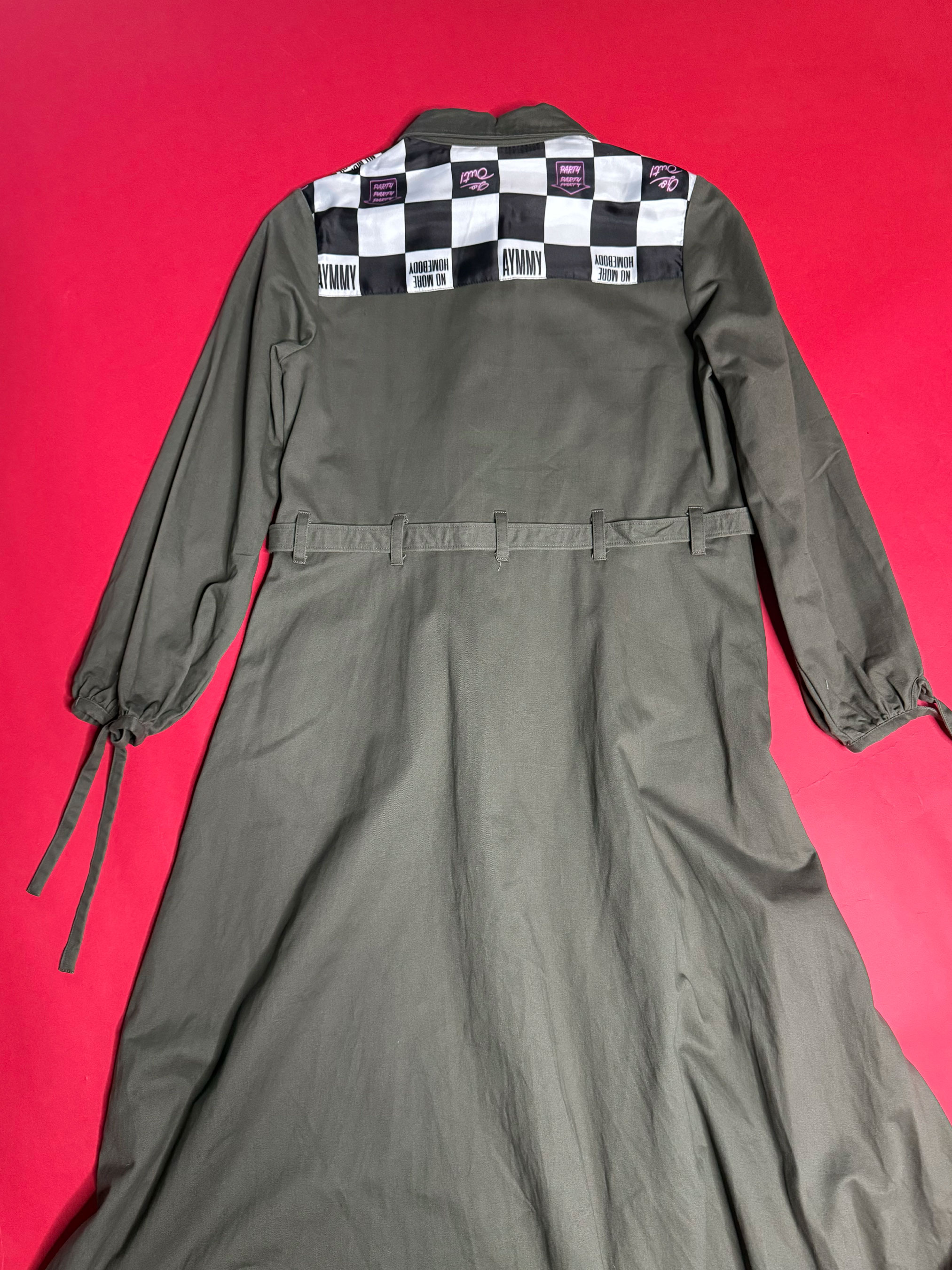 Crafted from cotton, this maxi dress isn’t just clothing—it’s a wearable statement. Featuring a buttoned front and a detachable belt, it beautifully blends utility-inspired fashion with distinctive street-style prints. With a flattering 35-inch waist, a 44-inch length, and 20-inch sleeves, this piece offers a tailored yet comfortable fit. In gently loved condition, it’s ready to elevate your wardrobe with bold, eye-catching style.