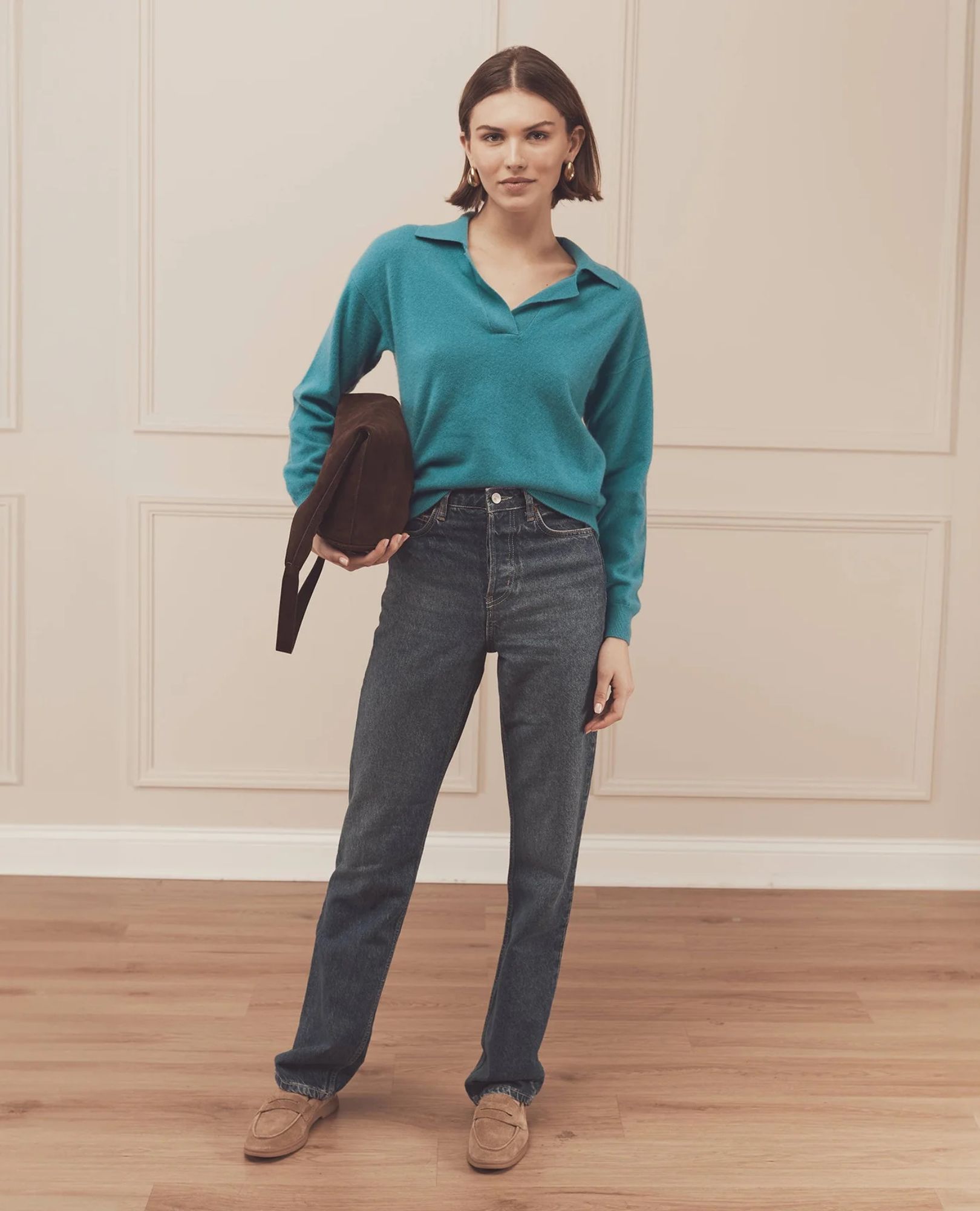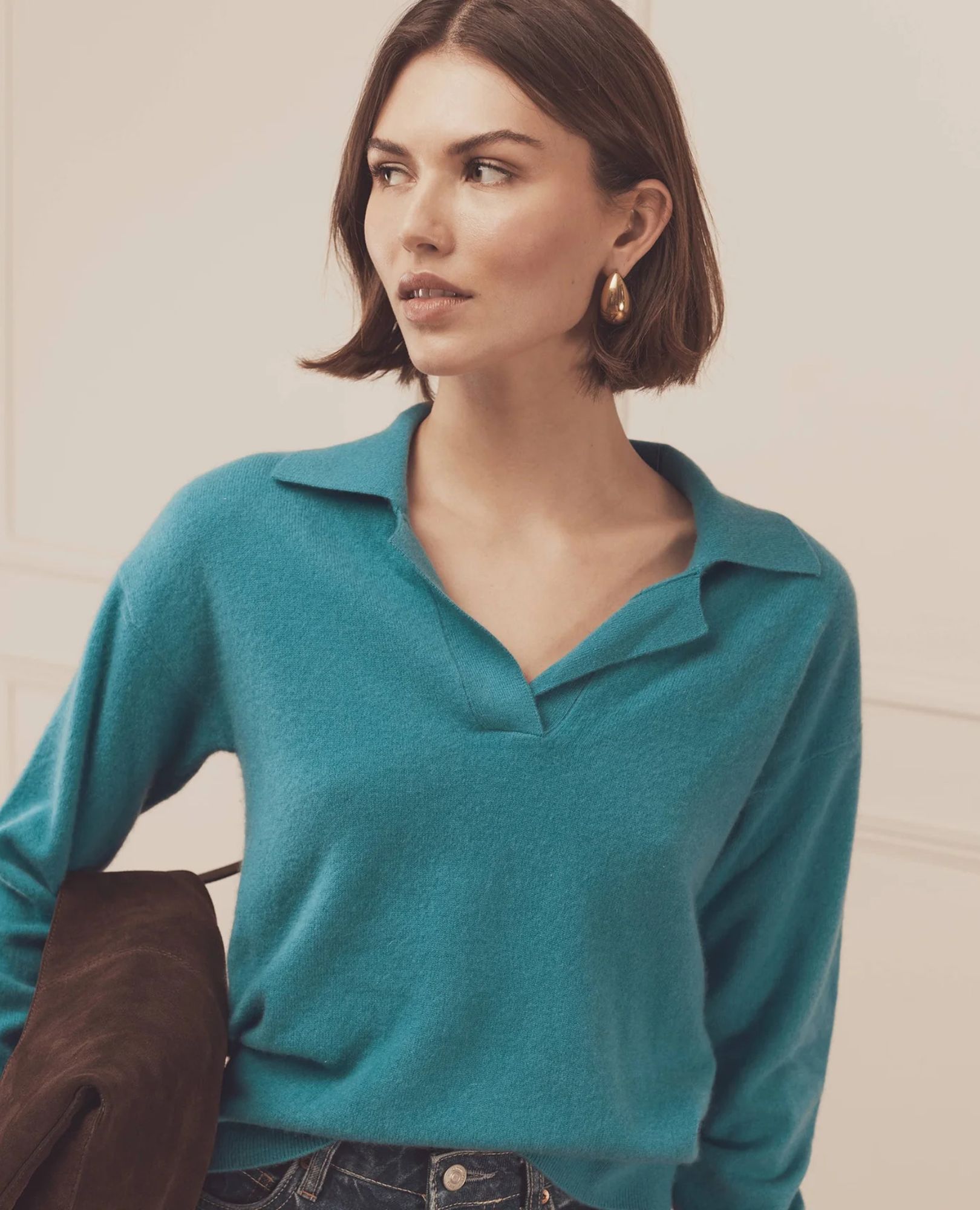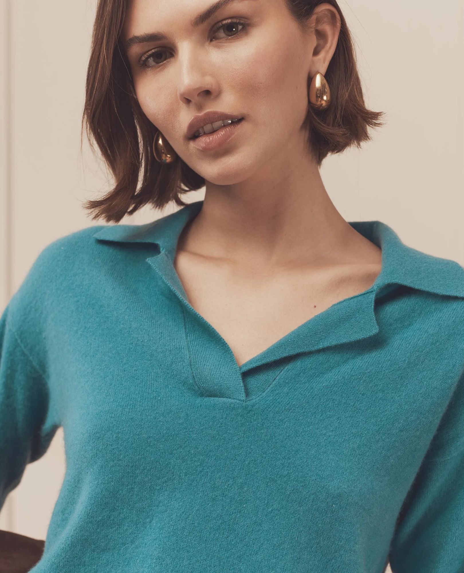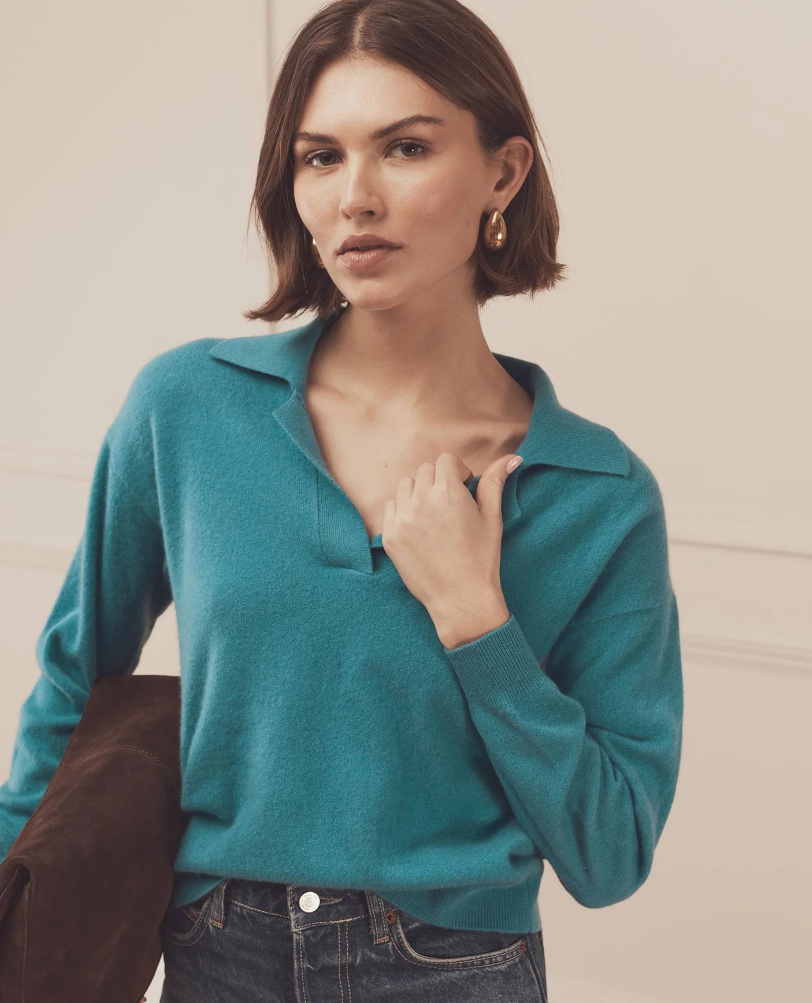 Elevate your casual style with the pure cashmere polo. Featuring a relaxed collar and simple v-neck, it offers an effortless silhouette that pairs beautifully with denim.