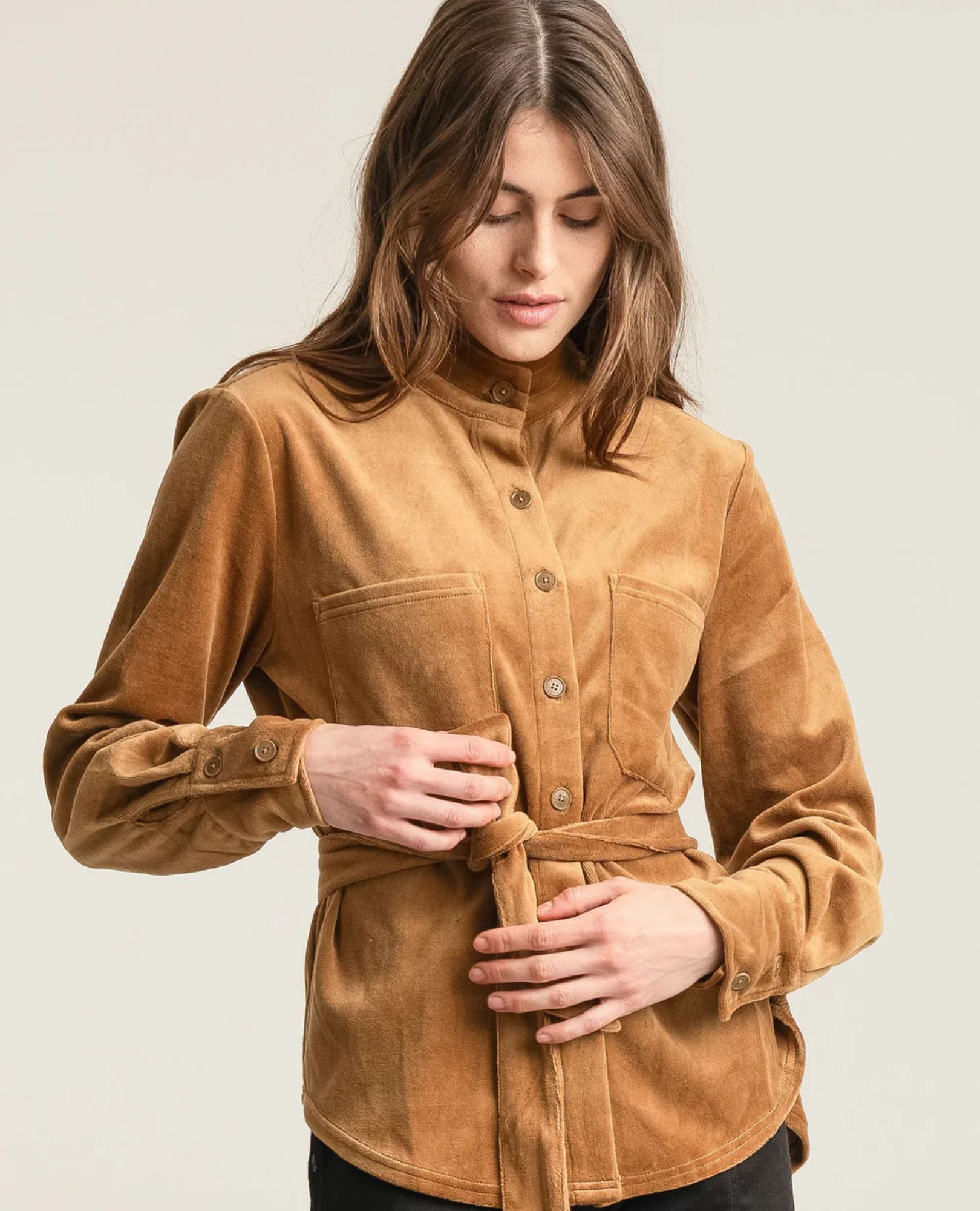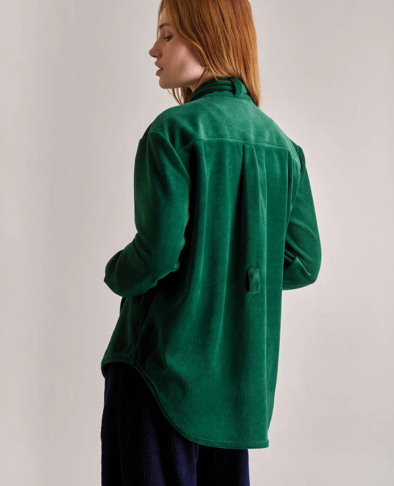 The Ford Top: your new winter style MVP. This lush green velvet overshirt is the cozy, sustainable layer you’ll live in. With its chic tie detail and ethical cred, it’s comfort that looks incredible.