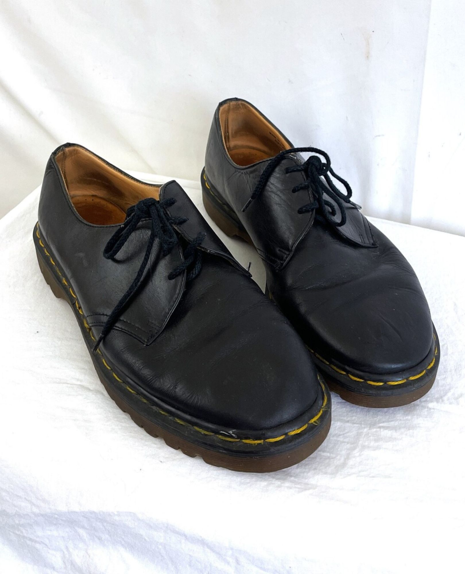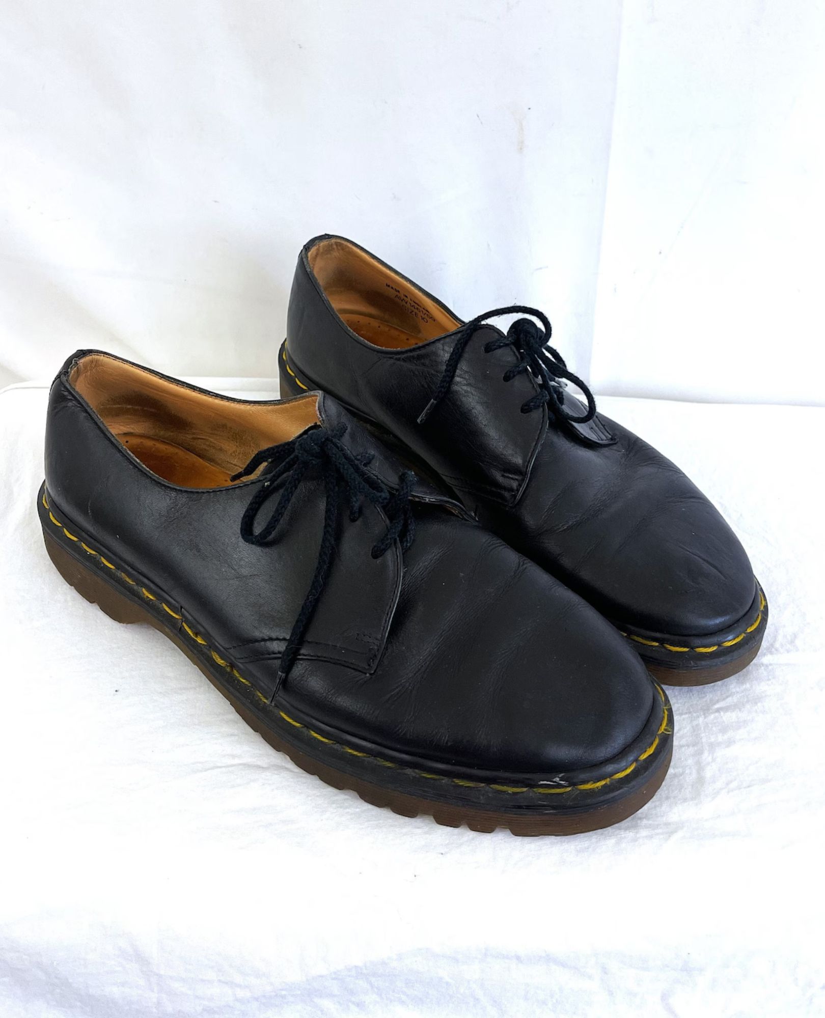 Step into punk-rock history with these great vintage Doc Martens, proudly made in England. UK size 10 with soles in excellent shape—sole length 12 1/4″, width at ball 4 1/2″ (check measurements for fit). Built tough for timeless style.