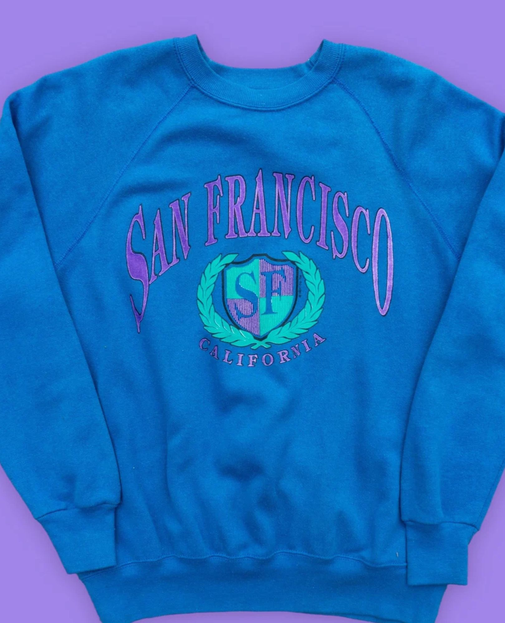 Classic and cozy, this 1980s raglan crewneck reps San Francisco in retro style. A soft cotton-poly blend gives it that perfectly worn-in feel.