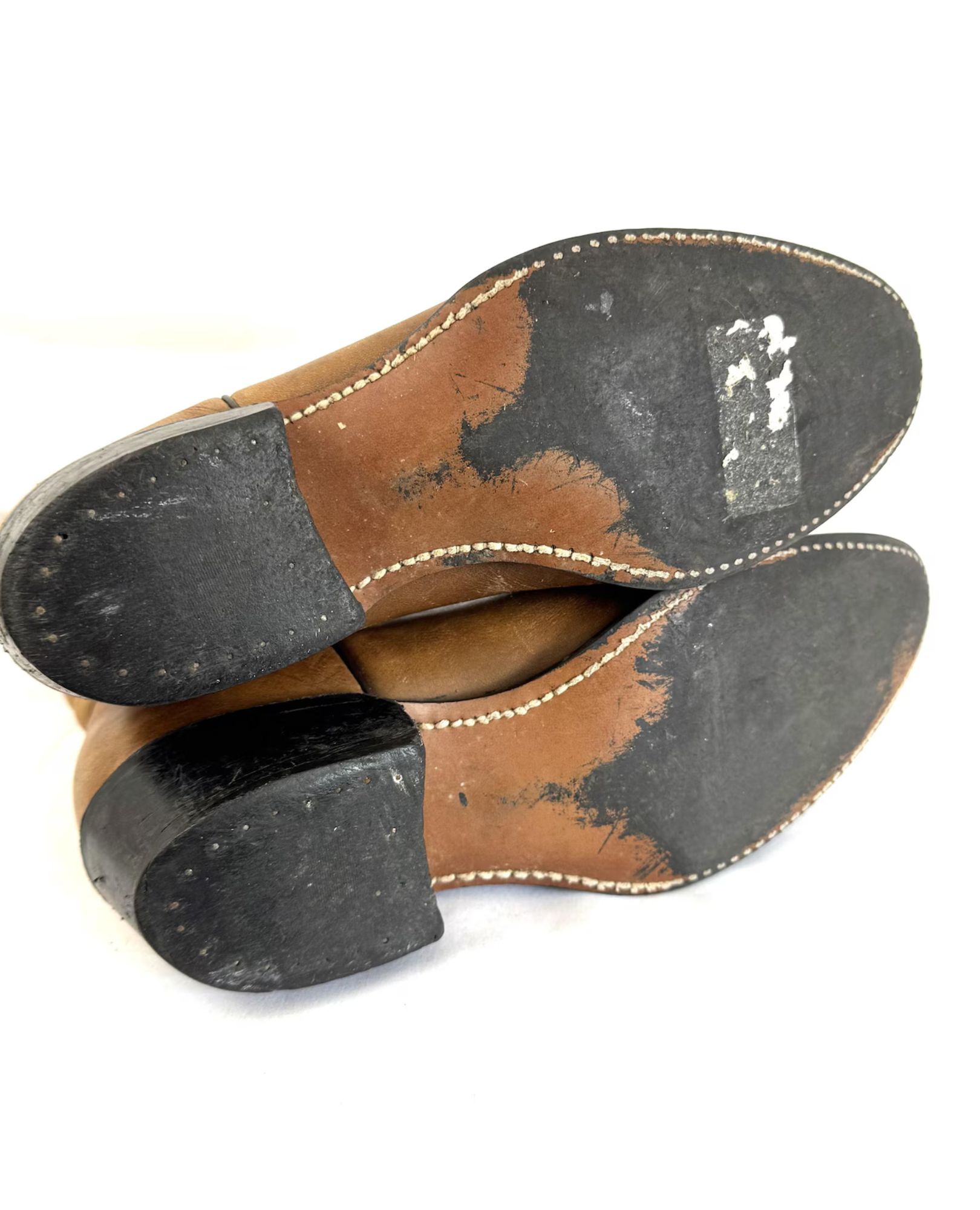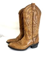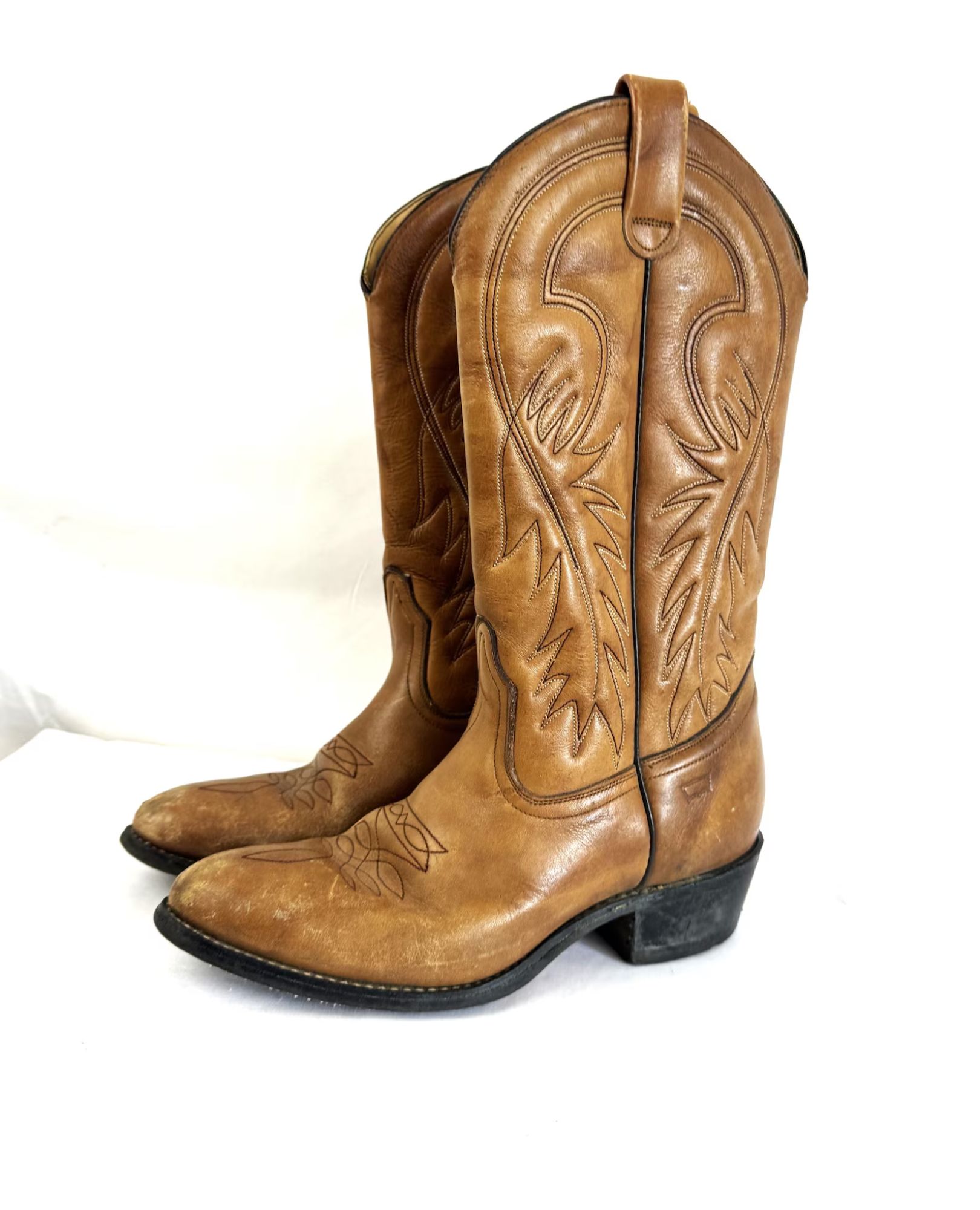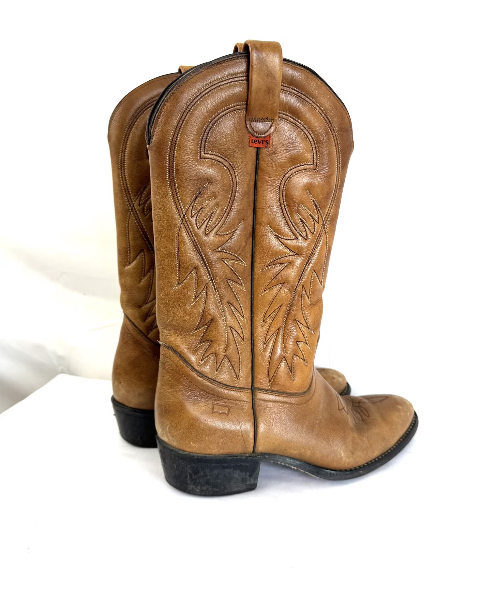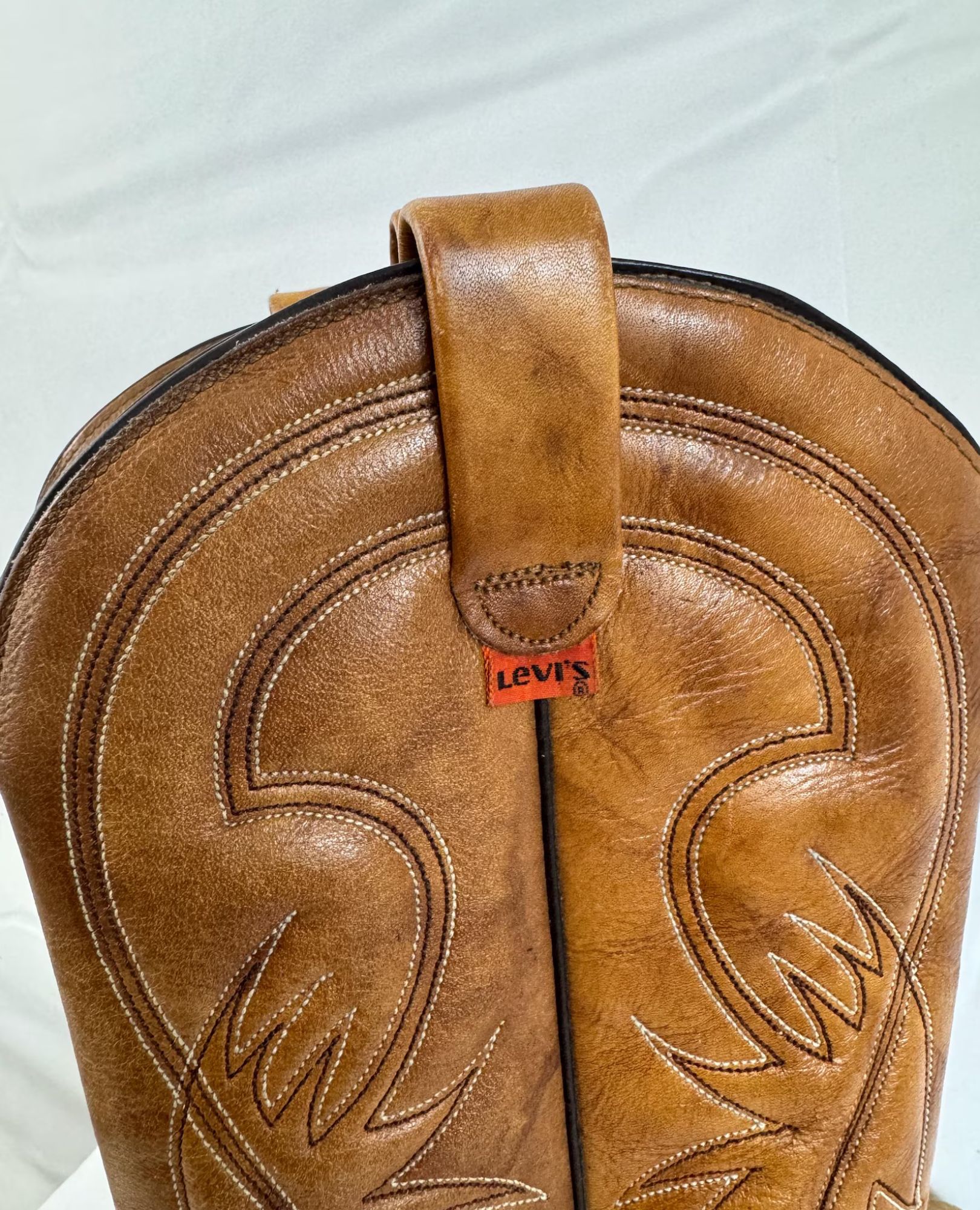 These vintage 1970s Levi’s Western cowboy boots are the real deal—complete with the orange tag on the side and classic made-in-USA craftsmanship. Rugged, cool, and full of character. Men’s size 7.5 (would also work for women’s styling!). In great vintage shape with some scuffs on the toe and heel—nothing that takes away from their badass charm.