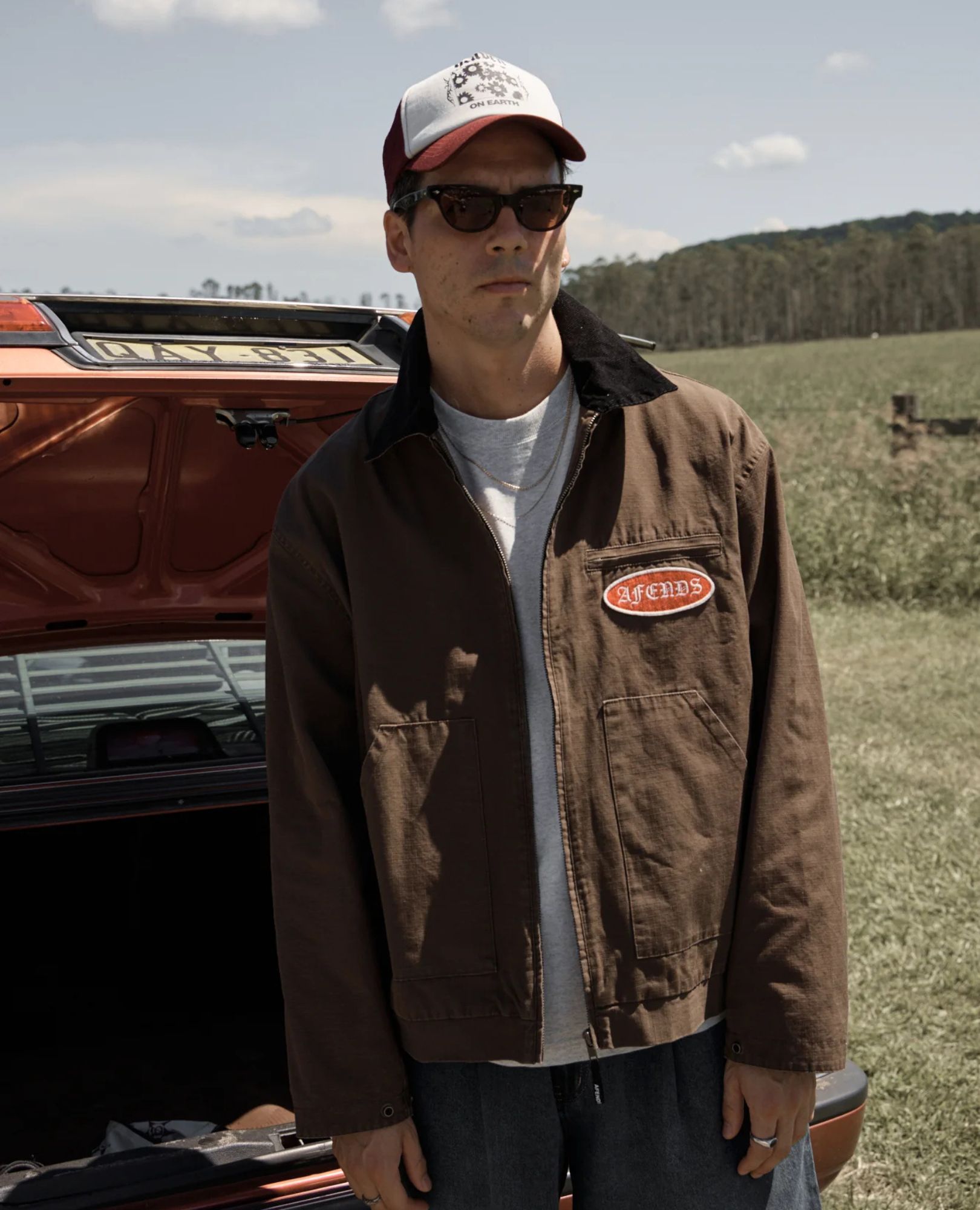 A heavy-duty organic cotton ripstop jacket blending skate, streetwear, and workwear vibes. Features oversized patch pockets, a corduroy collar, and durable details like press-stud sleeves and internal storage.